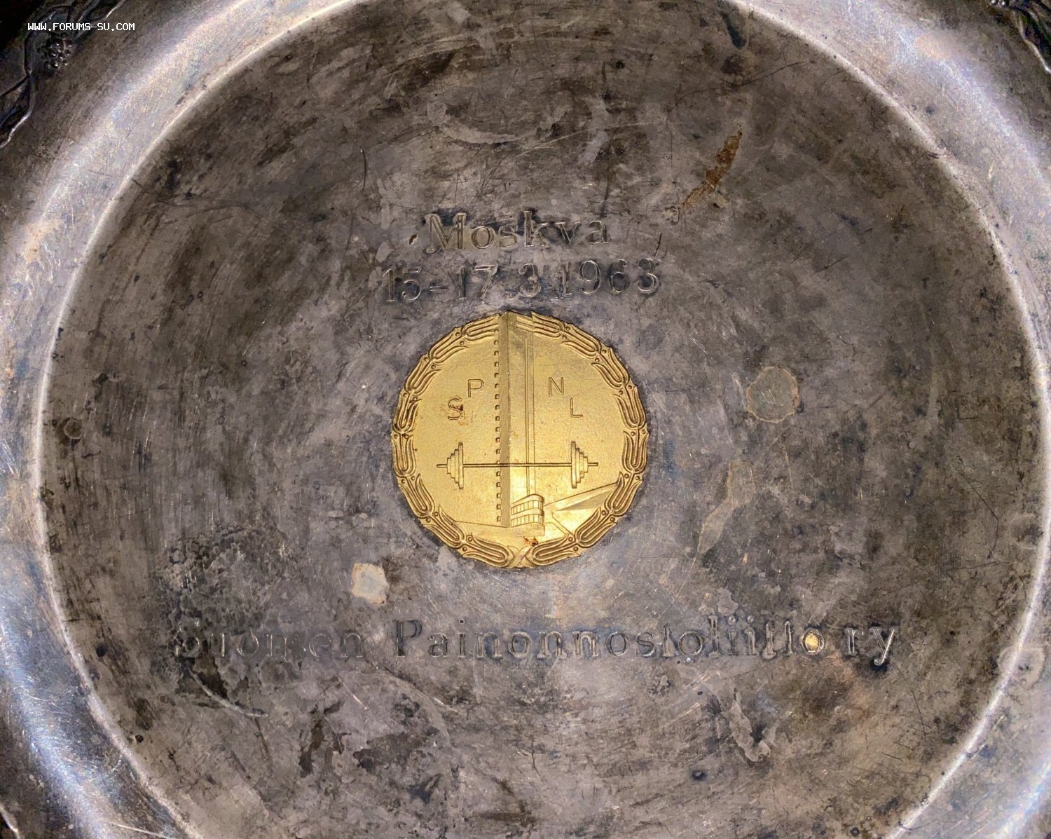 Призовая тарелка генерала ВВС Громова (Тяжелая атлетика). 1963 год. В лот входит визитка. Диаметр 31 см.