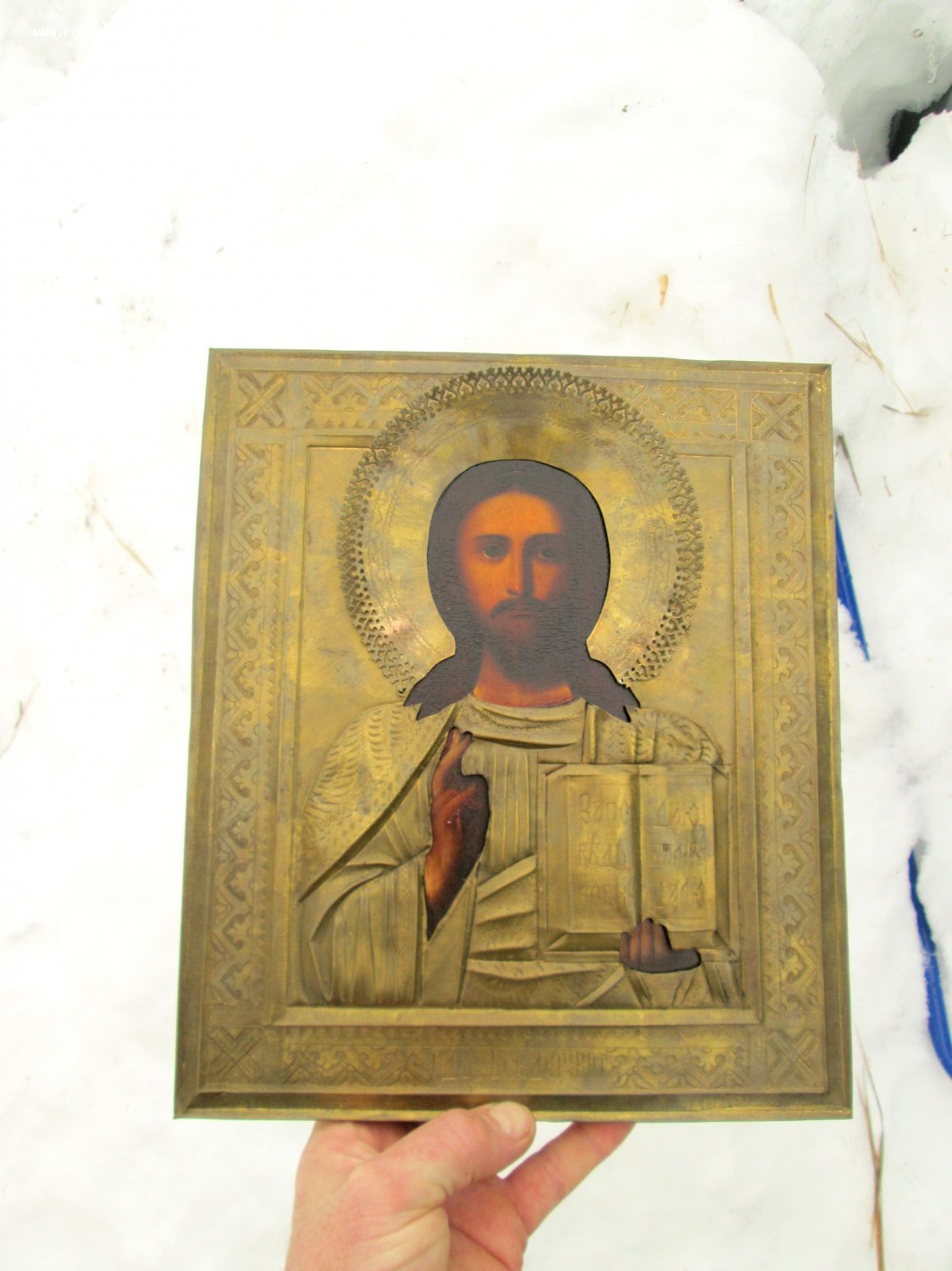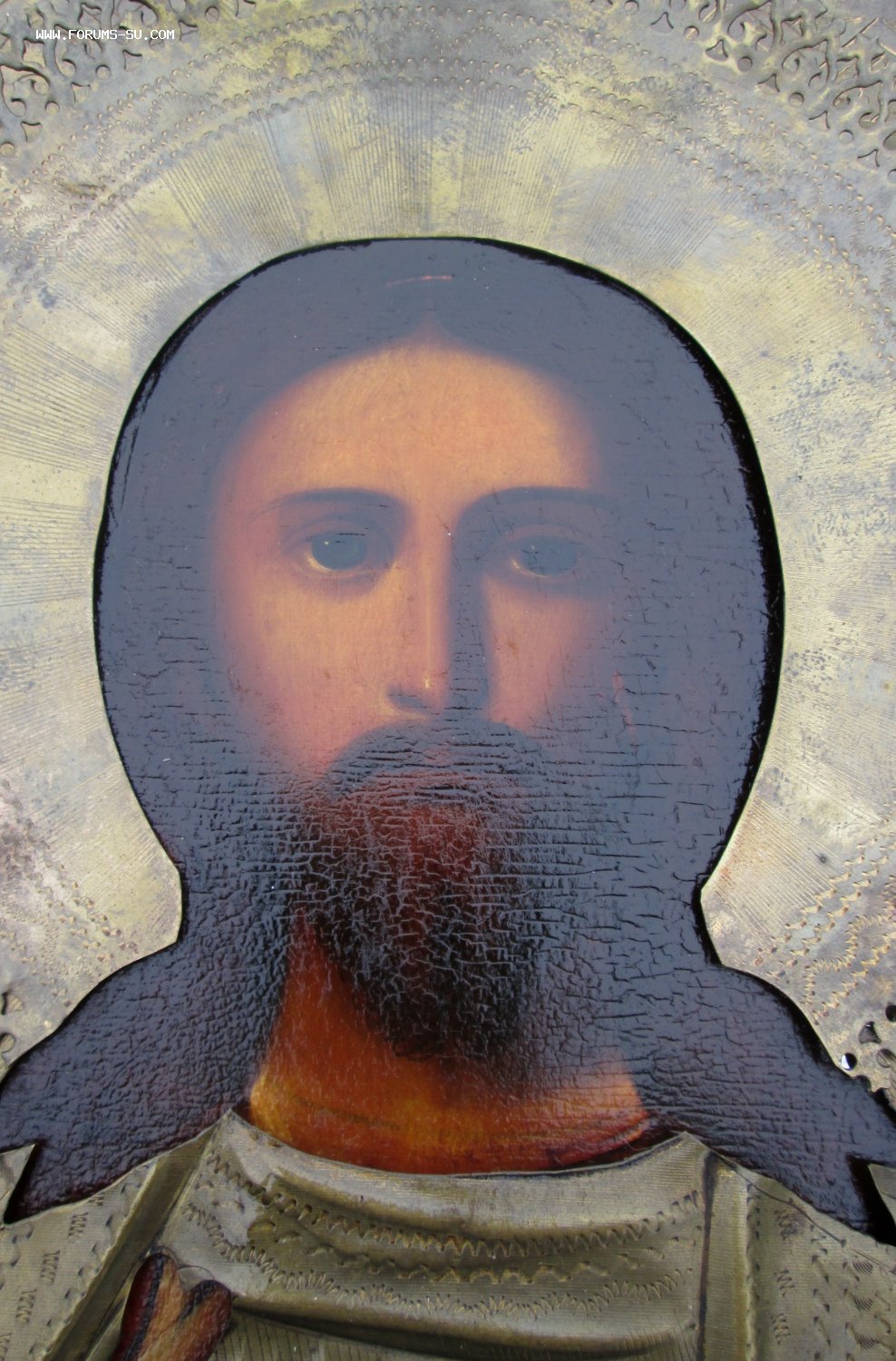 В продаже Икона Господь Вседержитель. Подокладная живопись кон 19, нач 20 века. без реставрации. Академический стиль письма. Оклад латунный, рисунок сделан штихелем. Бортики все целые, крепежи гвоздики внутри венца, усилены пайкой, просто болтался венец.