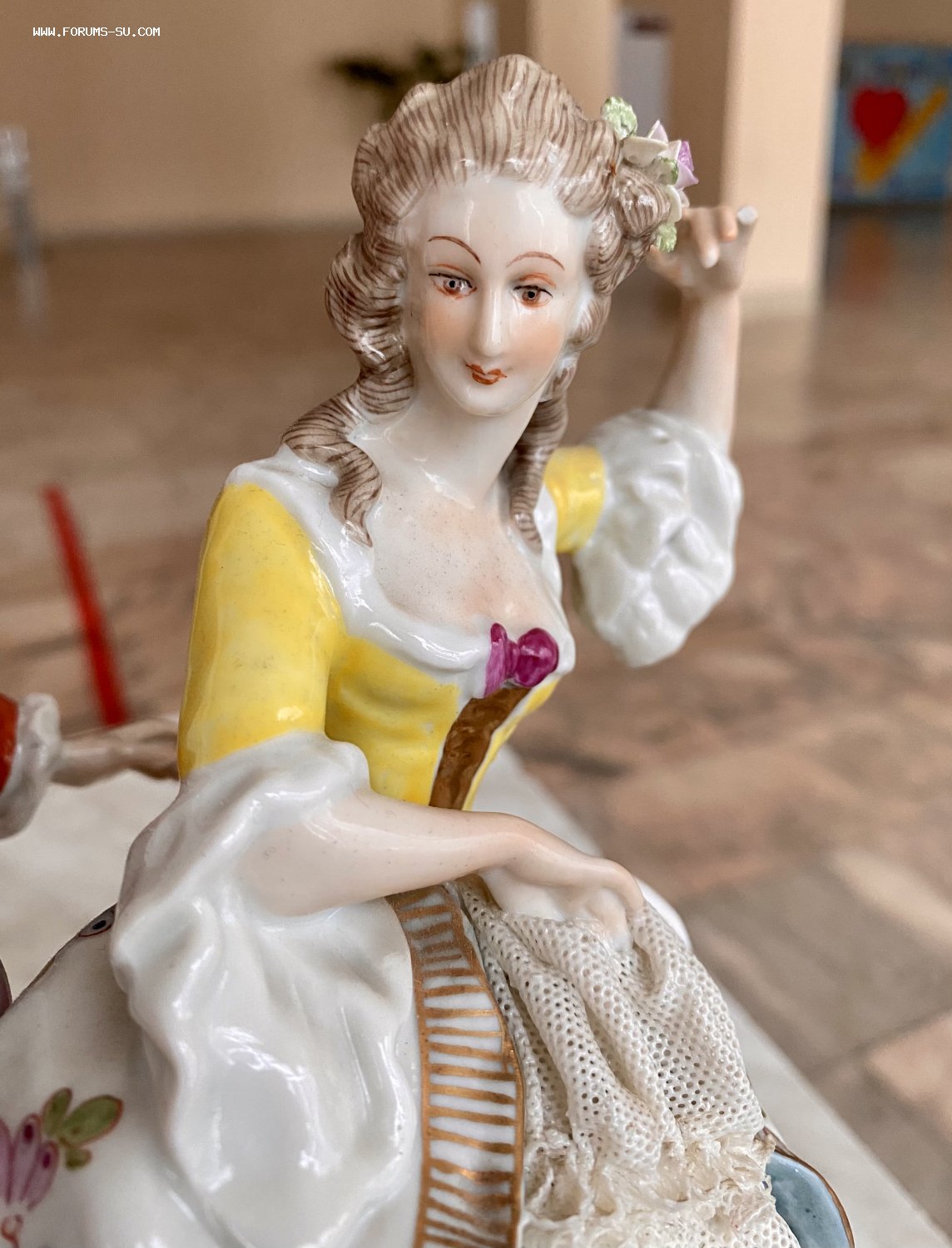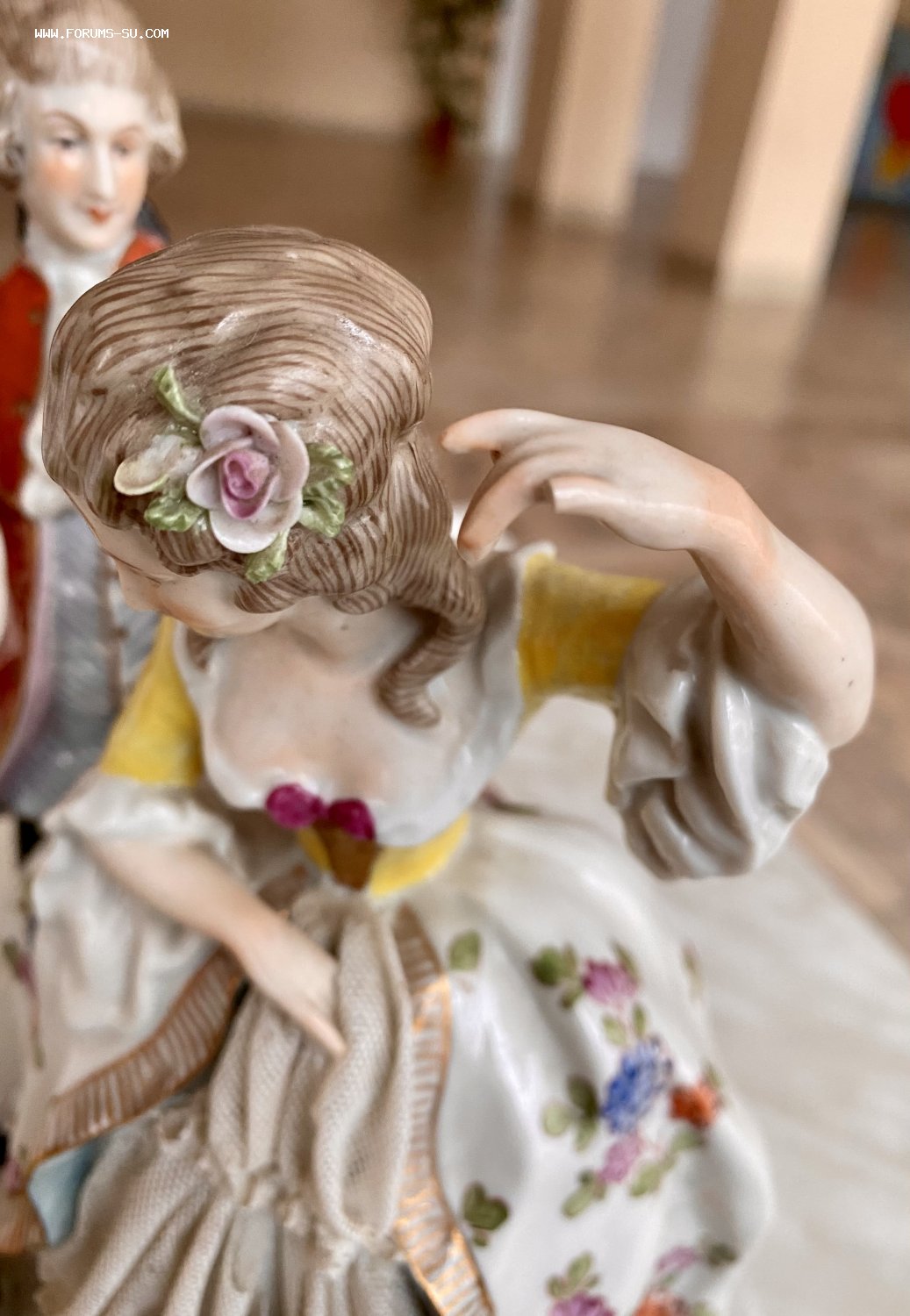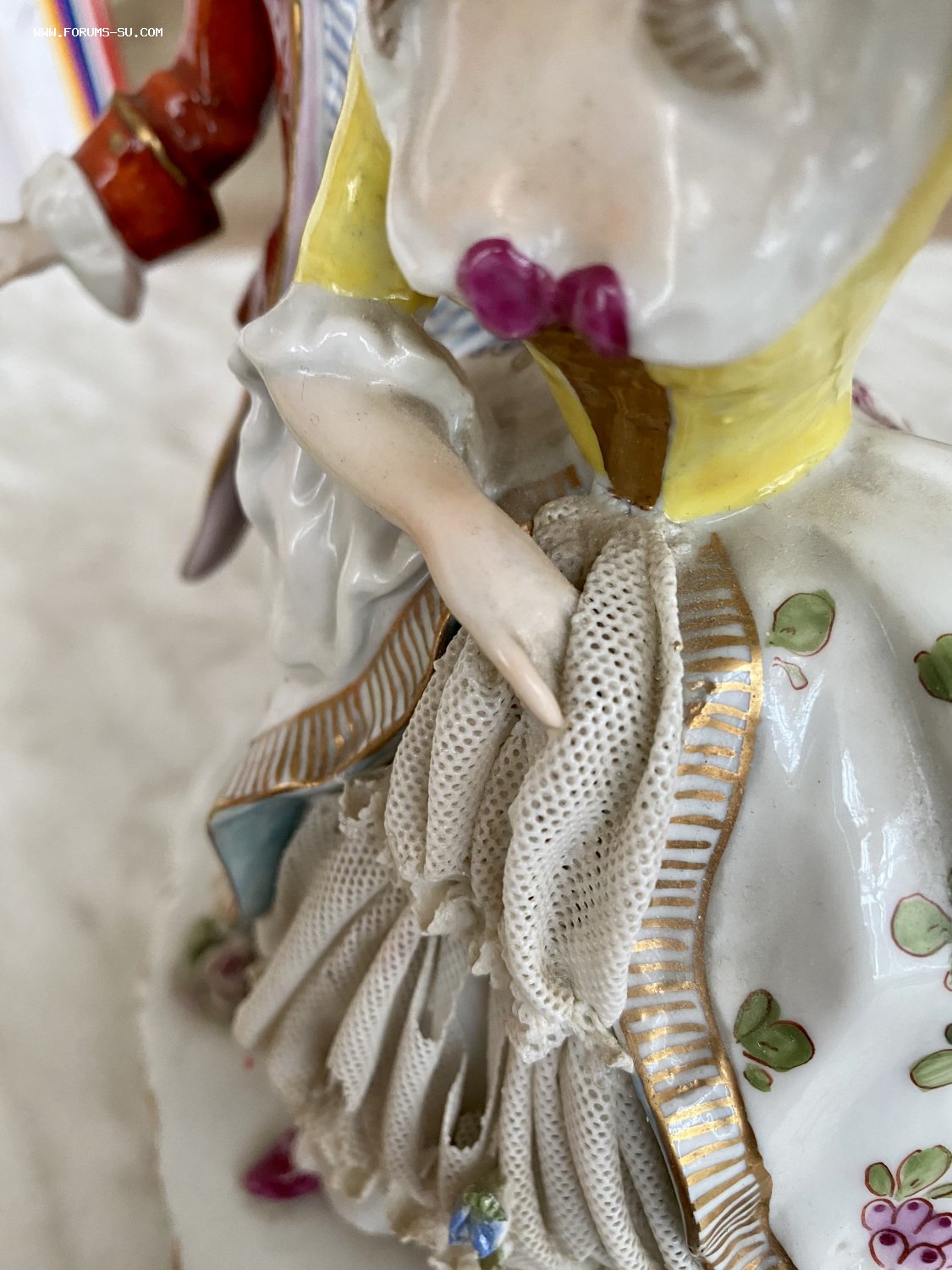 Статуэтка без реставраций и подмазок. Сохранность показал на качественных фото со всех ракурсов (есть скольчики на пальчиках и "сетке" платья).