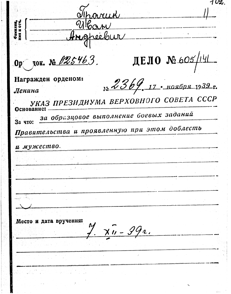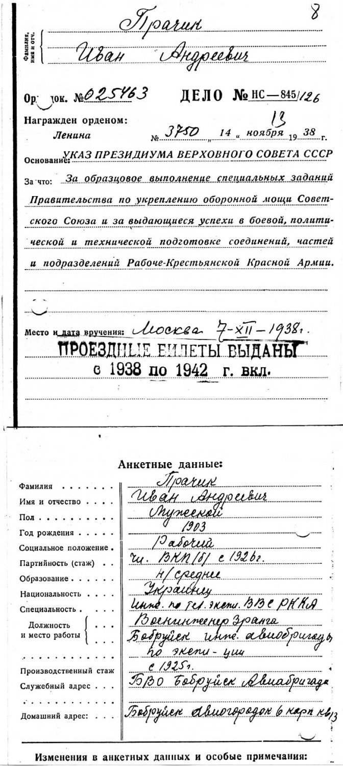 Пробивка довоенных наград. Наградные документы на военных.