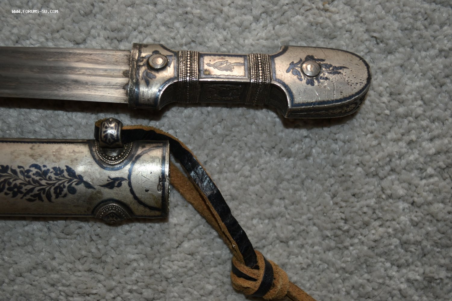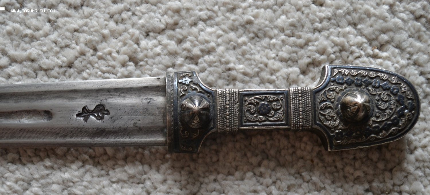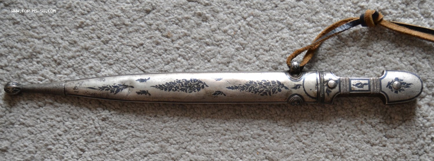 КИНЖАЛ КАВКАЗСКИЙ СЕРЕБРО 84пр. , клейма мастера и проба 84 до 1908 года на ножнах и рукояти. Длина общая-45 см, длина клинка-32 см.
