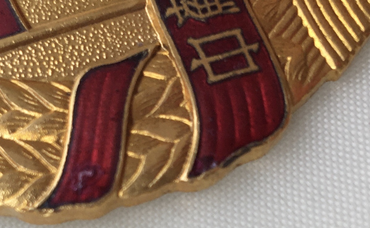 На ленточке слева внутреннее вкрапление в эмали.