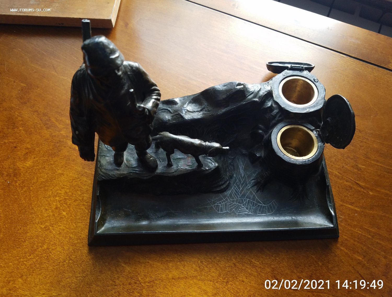 Письменный чернильный прибор -Охотник с ружьем и собакой В.В.67 - 18 фев 2021 11:24.10 × Мини профиль пользователя В.В.67 Сообщения: 8381 Зарегистрирован: 17 июл 2004 01:49.09 Статус: Не в сети - 18 фев 2021 11:24.10 #6503060 размеры 22х15х17см металл Фото С уважением,Владимир.
