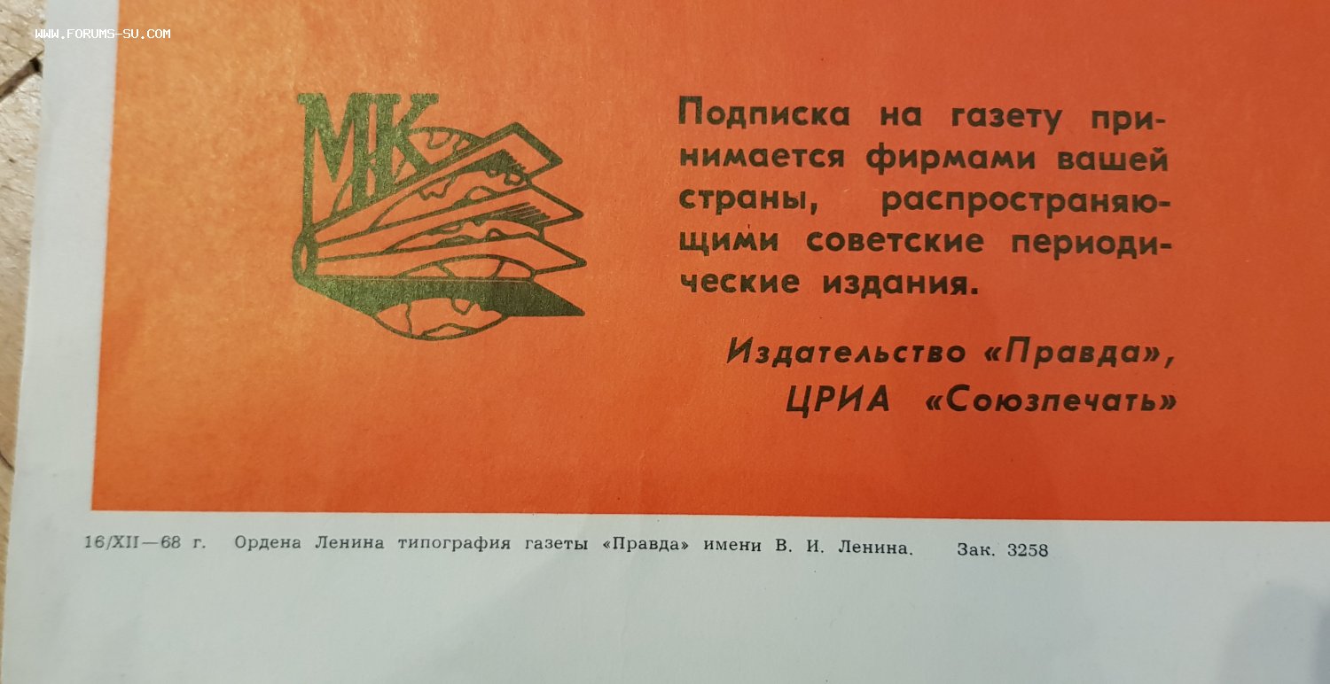 плакат 1968 г, газета "Правда" zhukov - 20 фев 2021 16:00.12 × Мини профиль пользователя zhukov Сообщения: 27365 Зарегистрирован: 07 июн 2009 22:00.18 Откуда: Болгария Статус: Не в сети - 20 фев 2021 16:00.12 #6503680 территориально в Болгарии, отправка повсюдуразмер 90 на 60 см (примерно) Фото Ищу ОЛ 343.492 и 433.740, 348.144