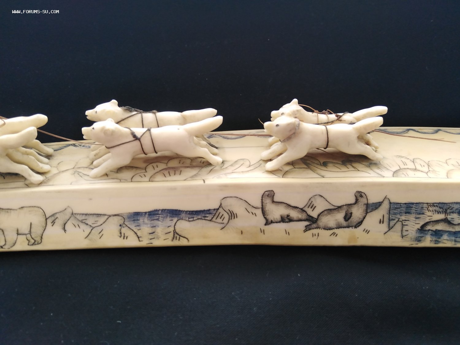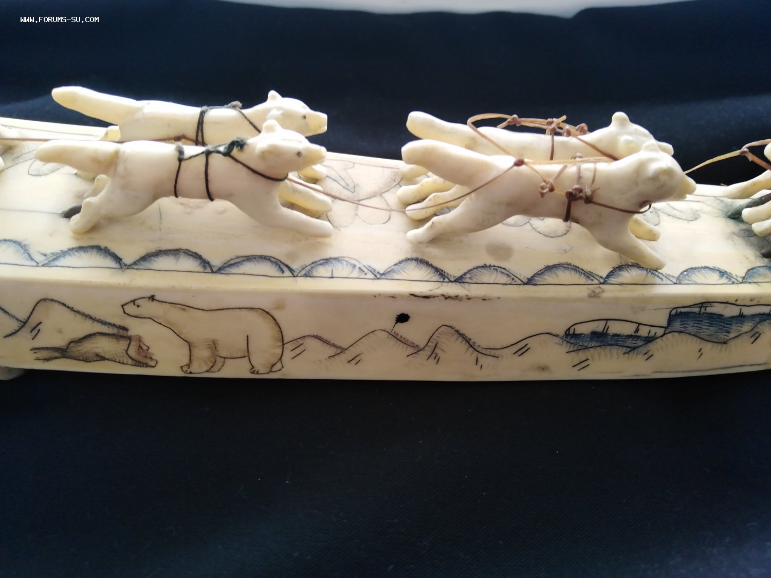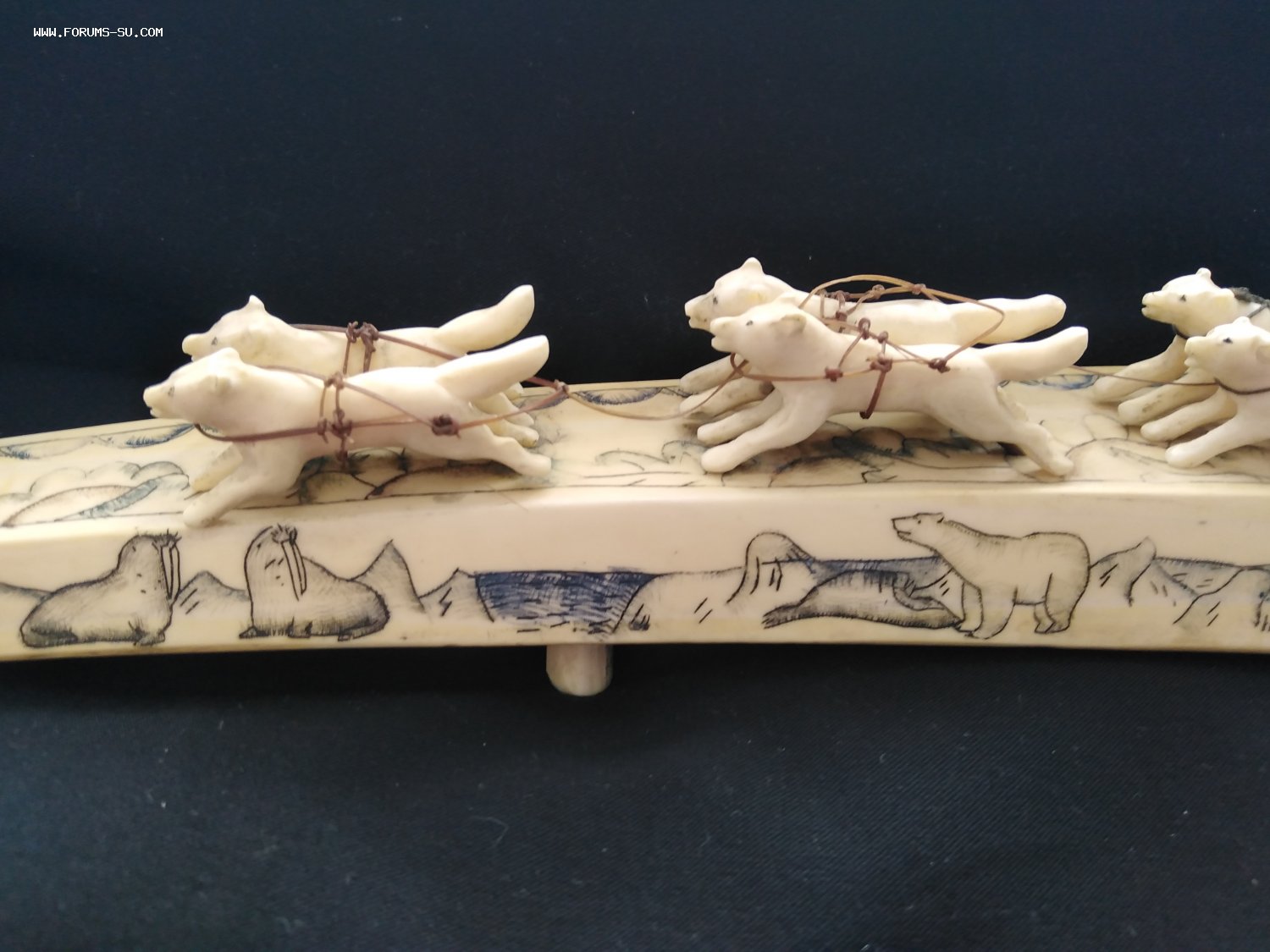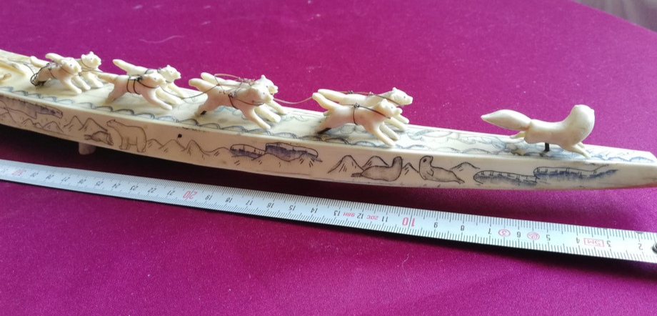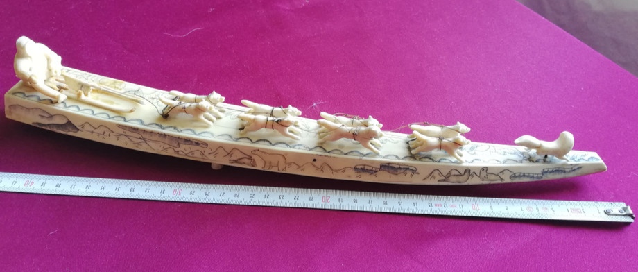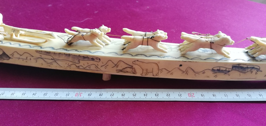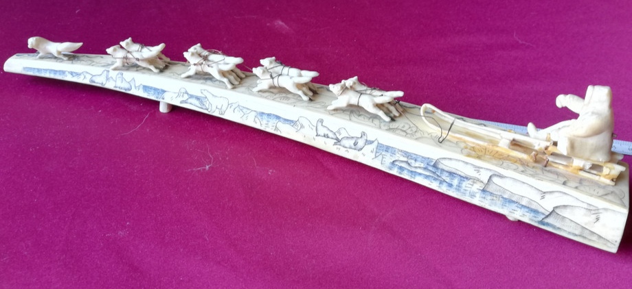 Погонщик и сани с дефектами, у вожака нет правой задней ноги.