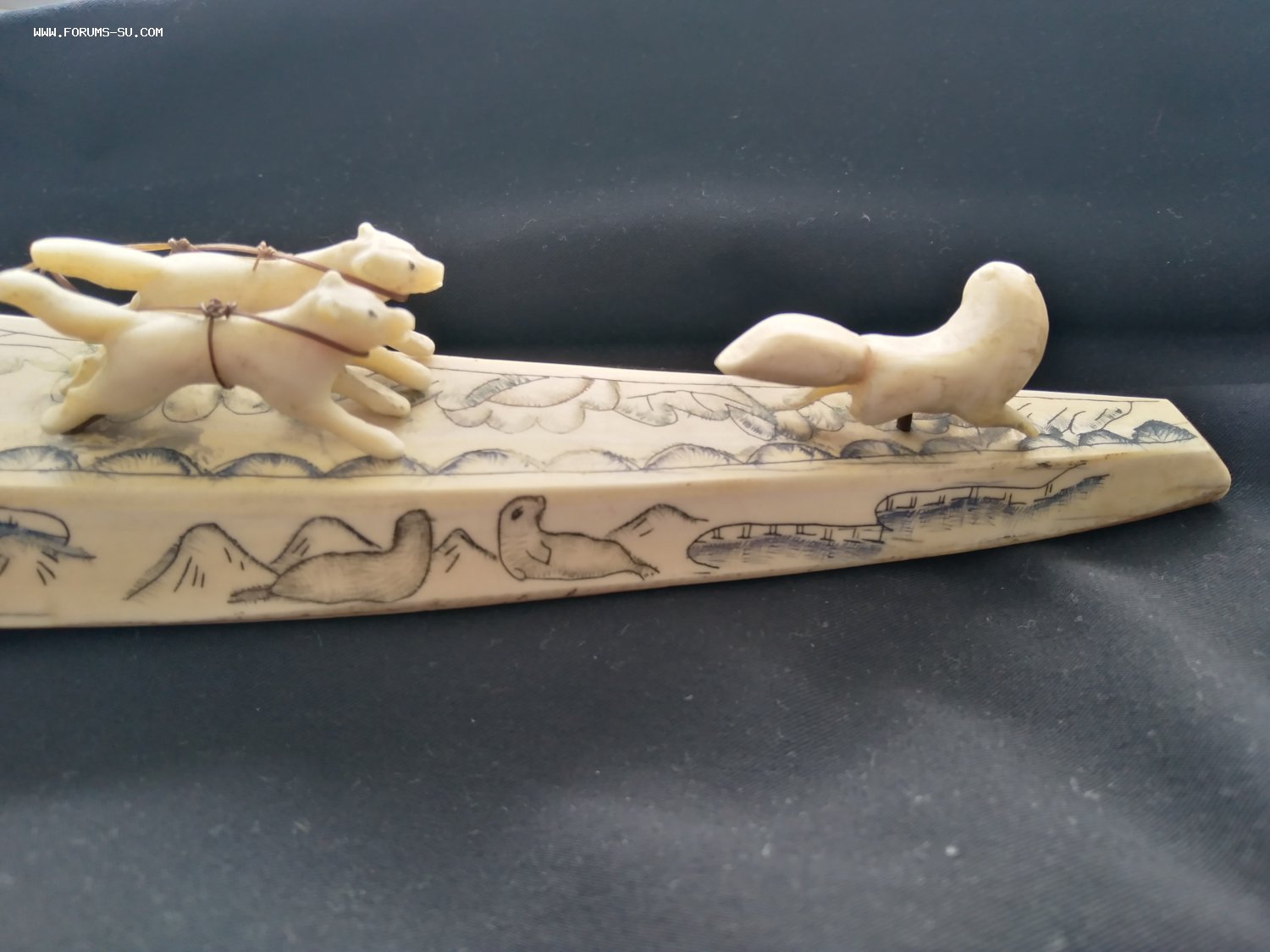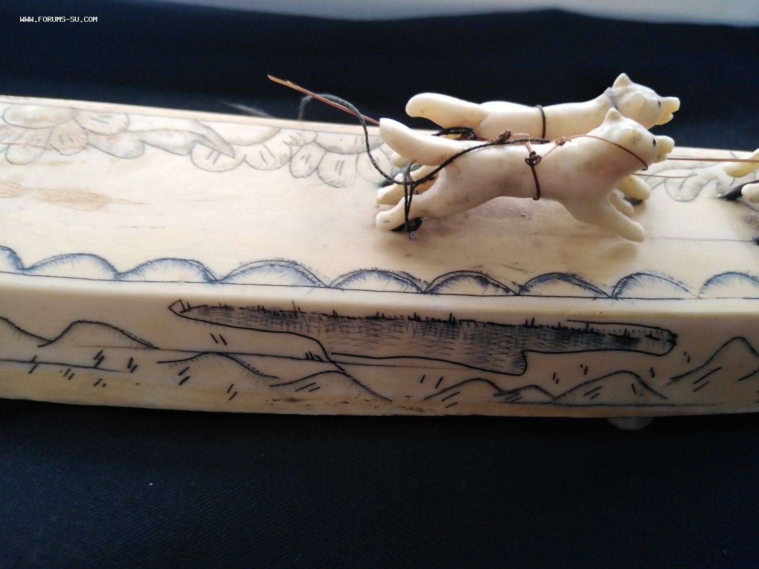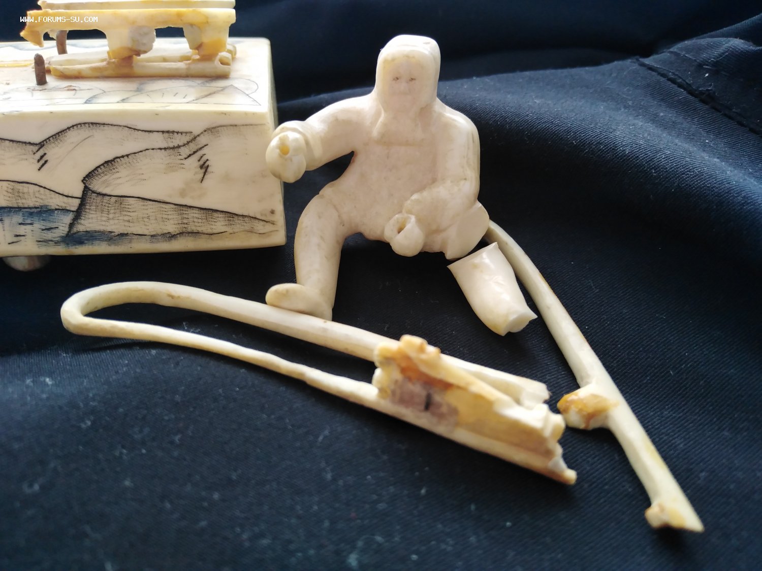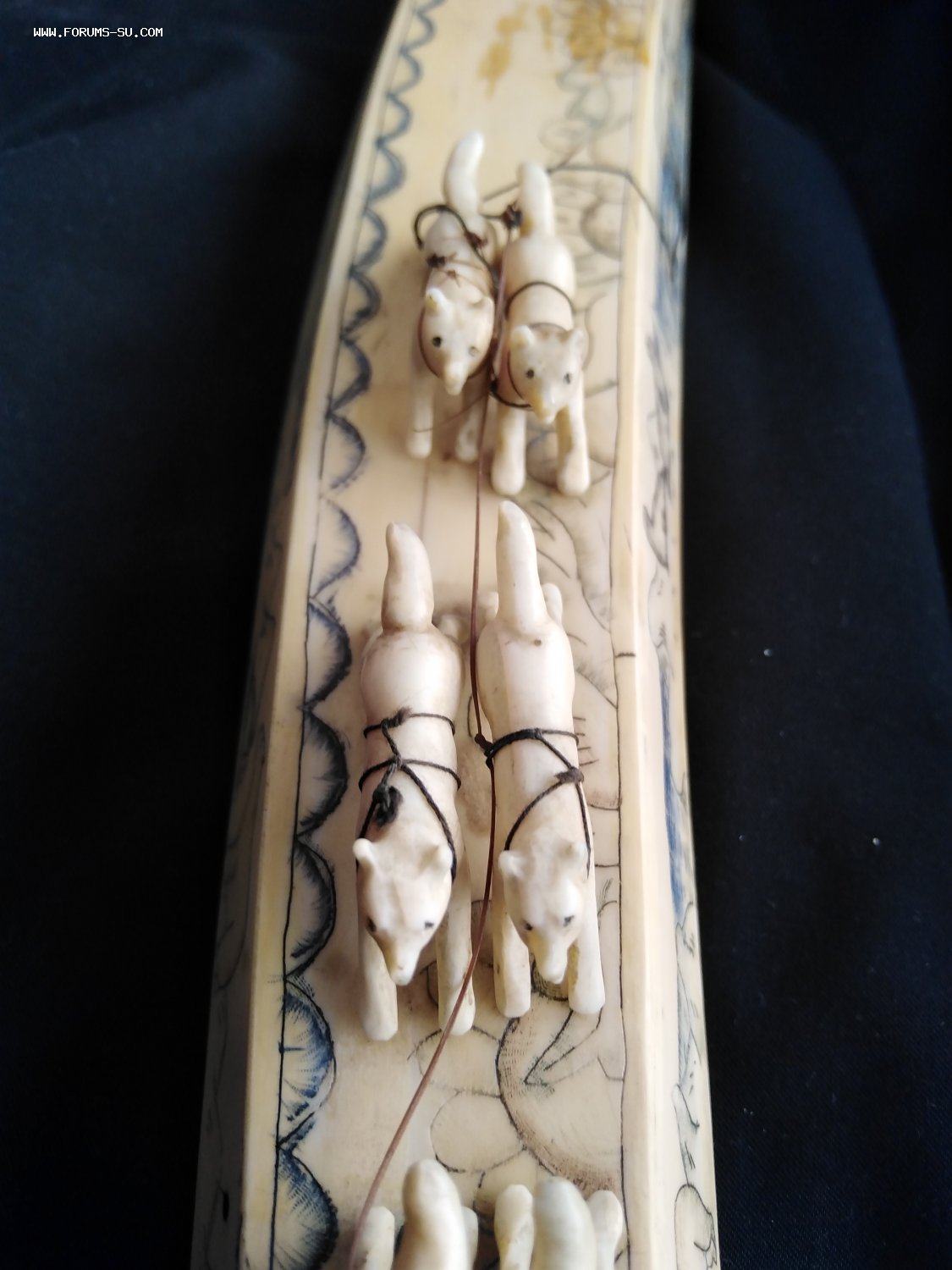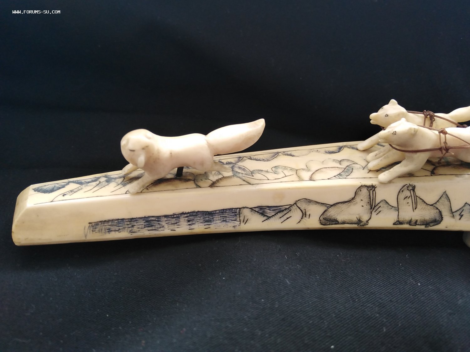 Погонщик и сани с дефектами, у вожака нет правой задней ноги.