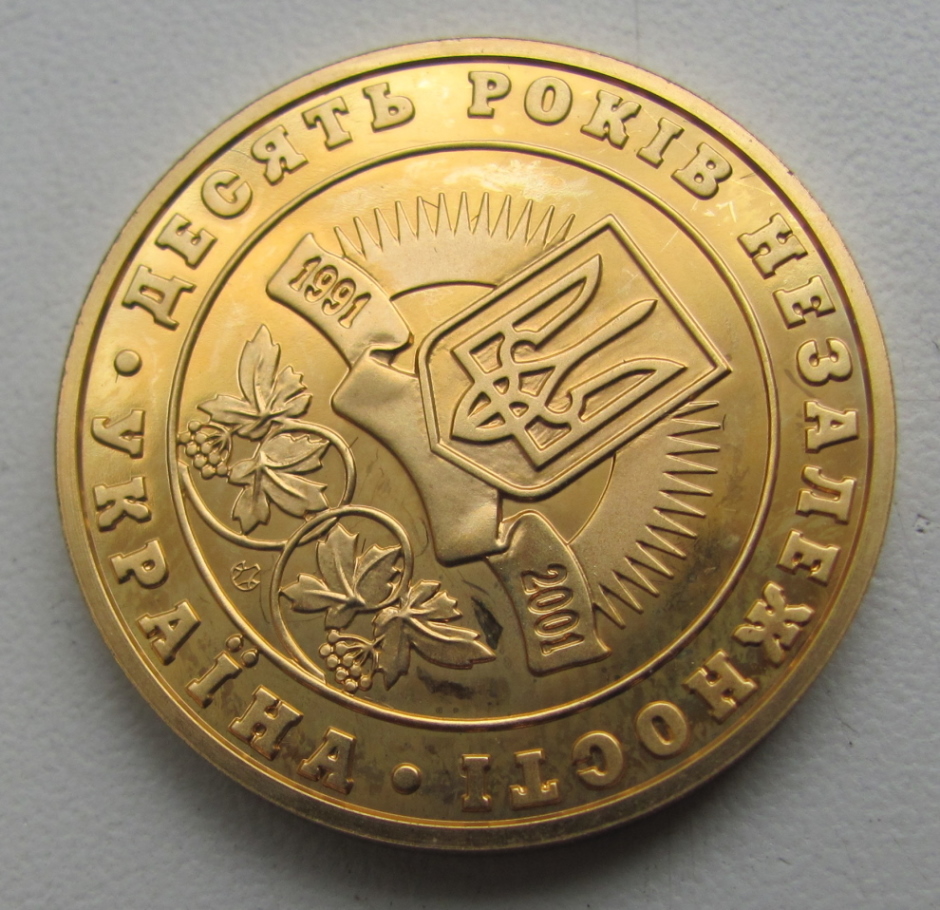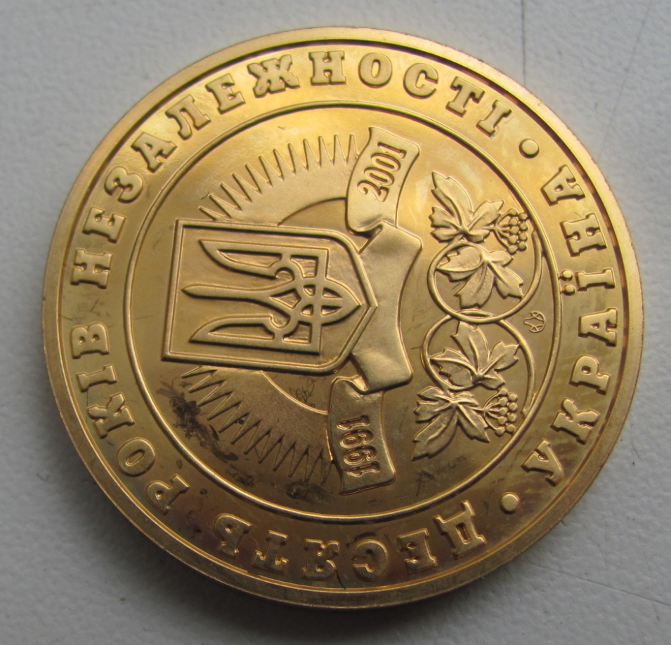 Настольная медаль "10 років Незалежності" (золото 900 пр.)