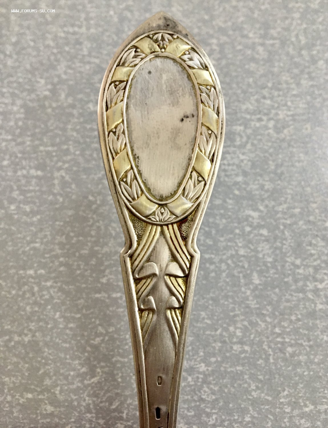 Вес 107,6 грамма. Серебро 925 пробы. Клеймо голова в кокошнике. Золочение.