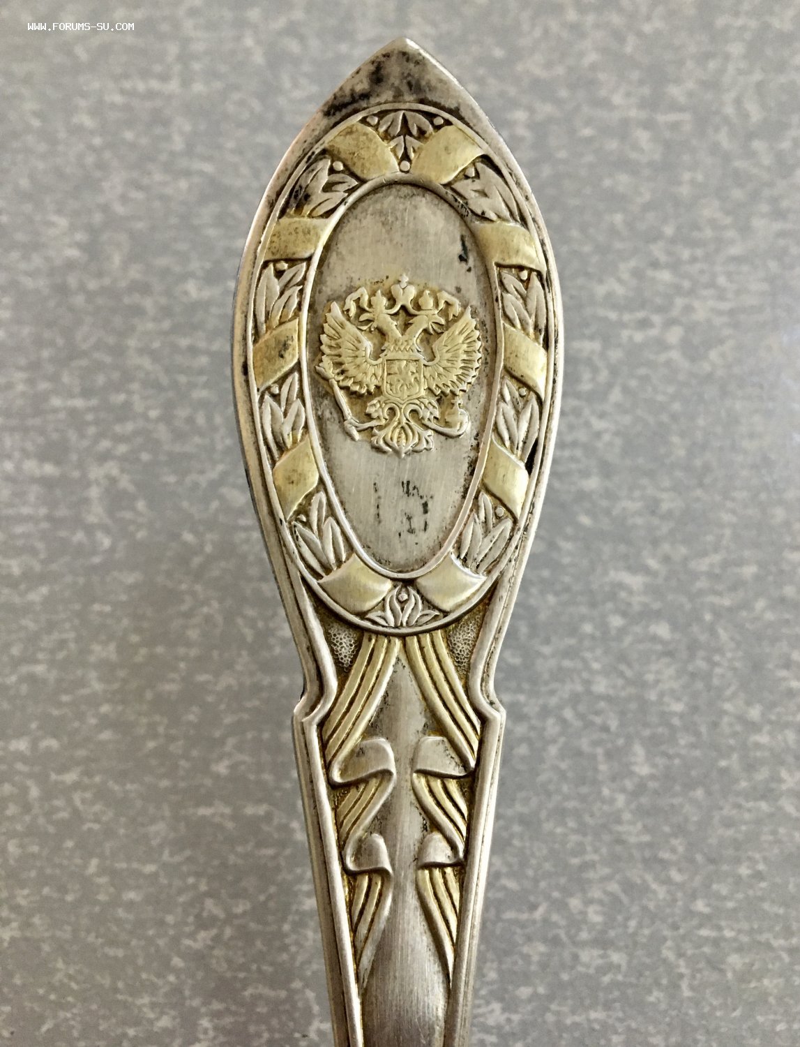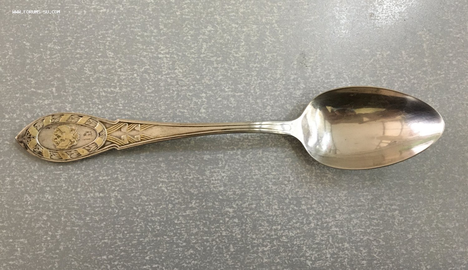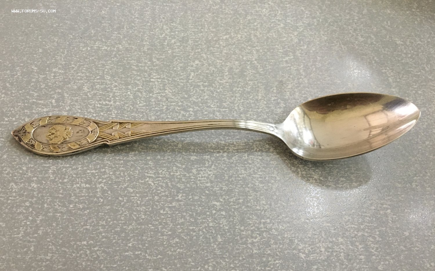 Большая подарочная серебряная ложка с орлом РФ.