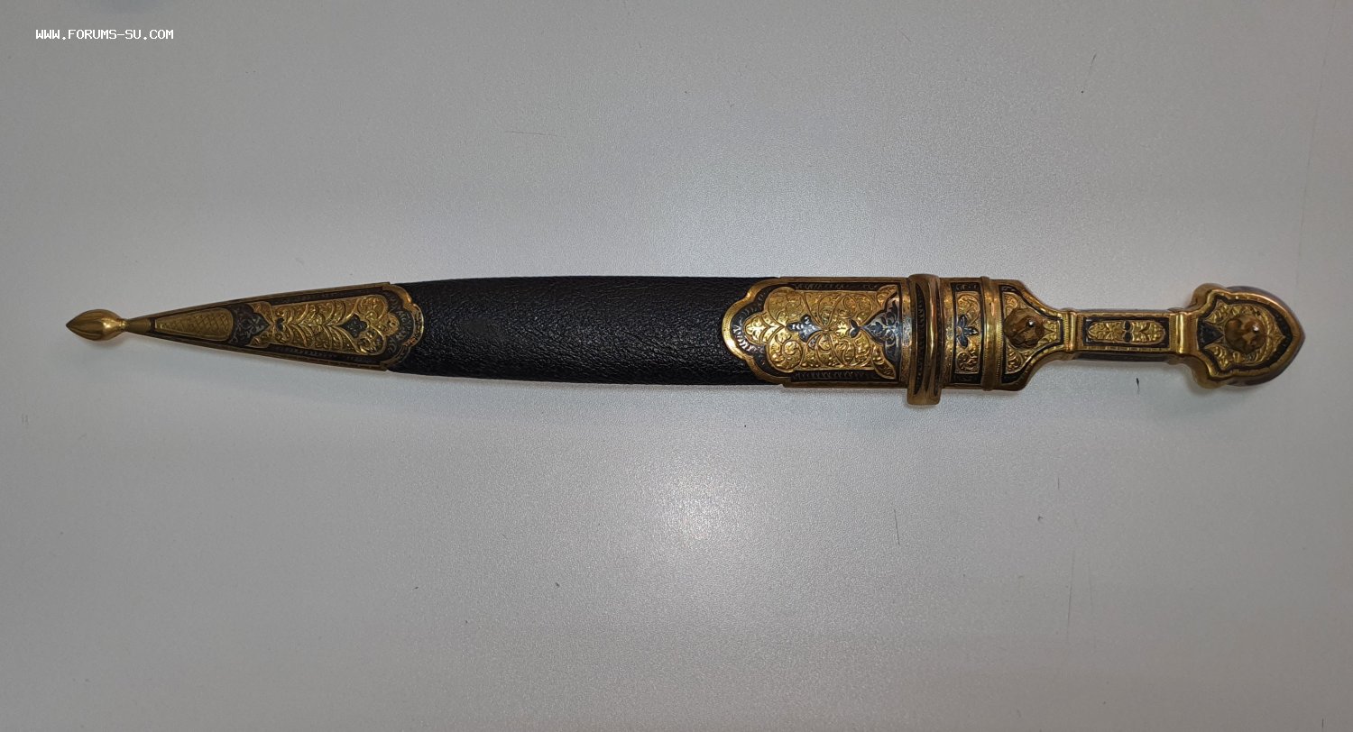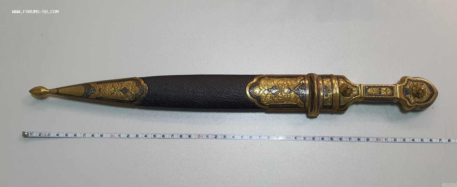 Кинжал кавказский. Серебро, кожа. Общая длина 47 см. Клинок заточен.
