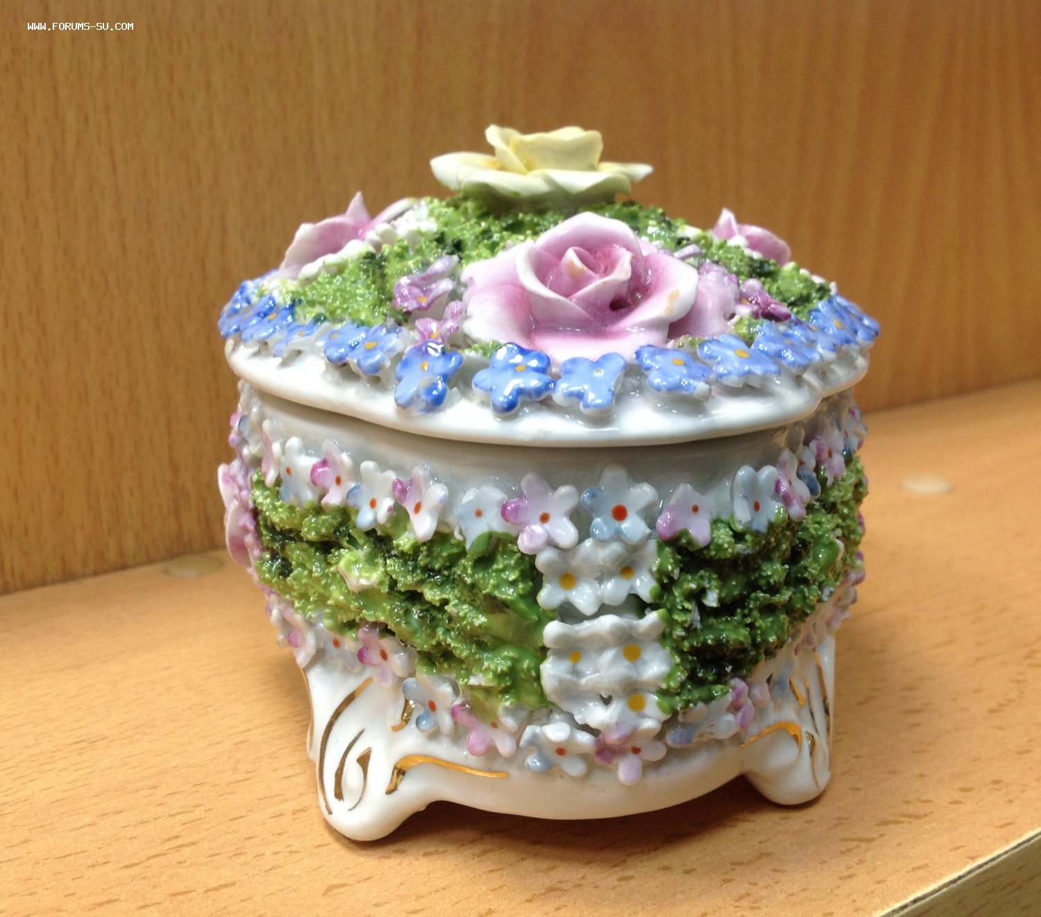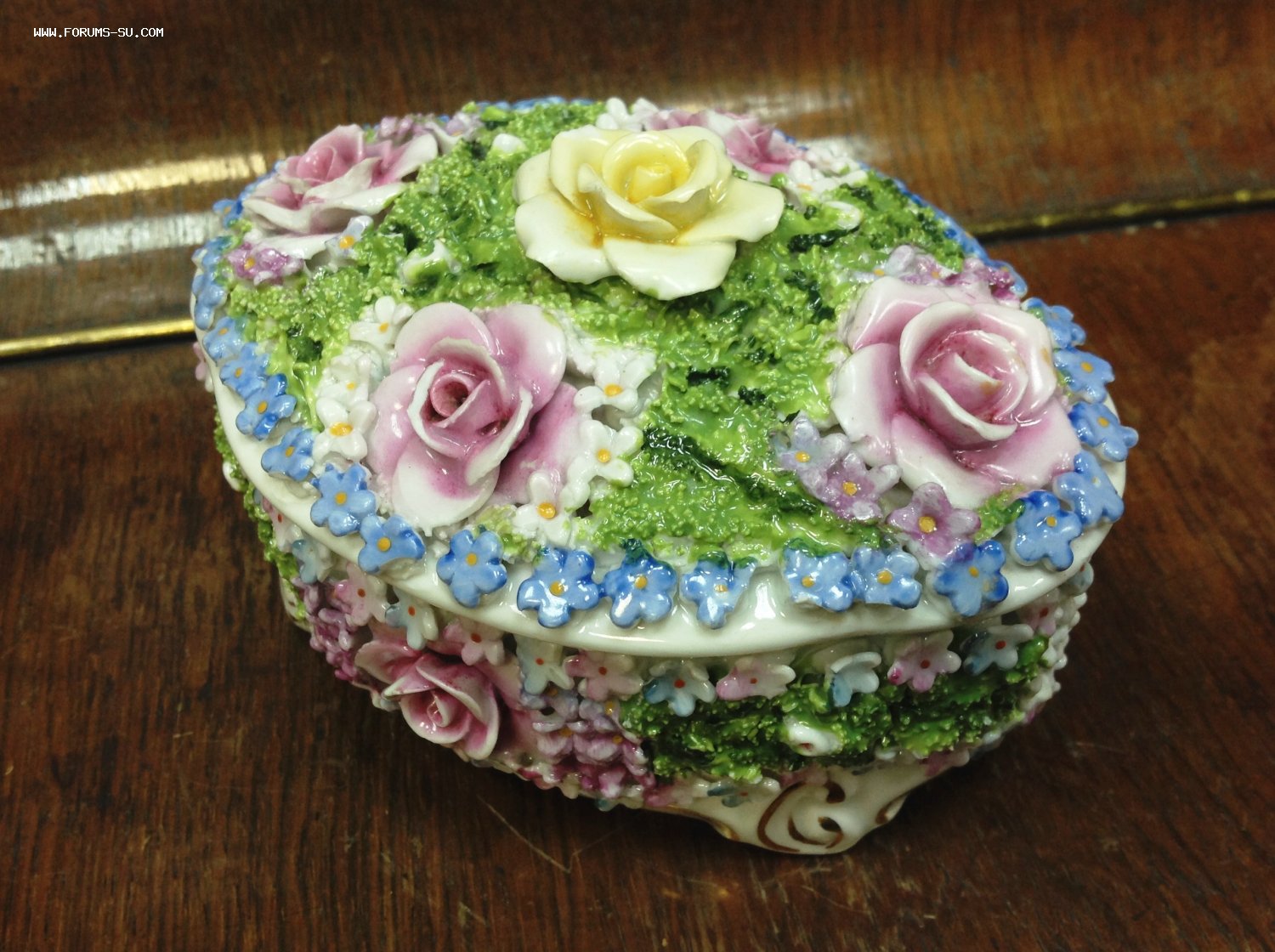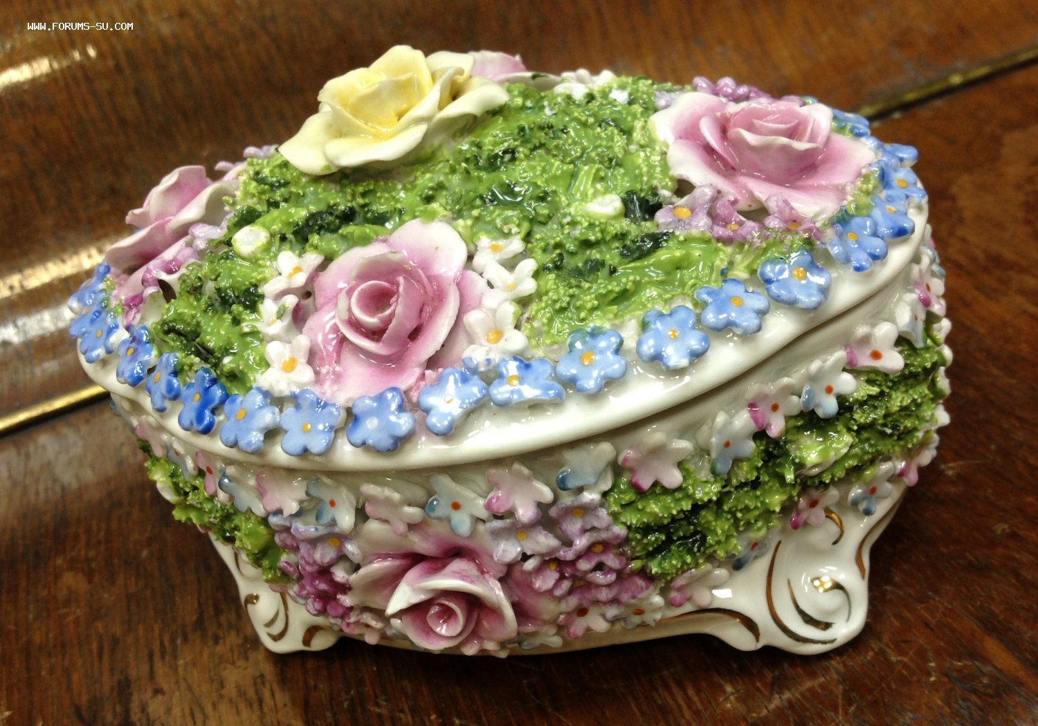 Размер 13,5 см на 10 см. Высота с крышкой 8,7 см. Есть скольчики по цветам..на ножках и внутри на крышке и внутреннем краешке шкатулки.. На фото показал... А в целом сочный приятный предмет.