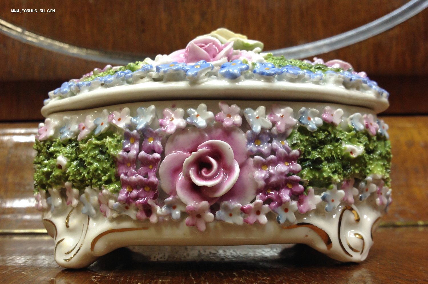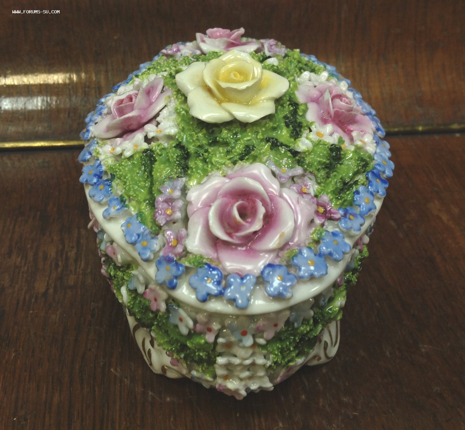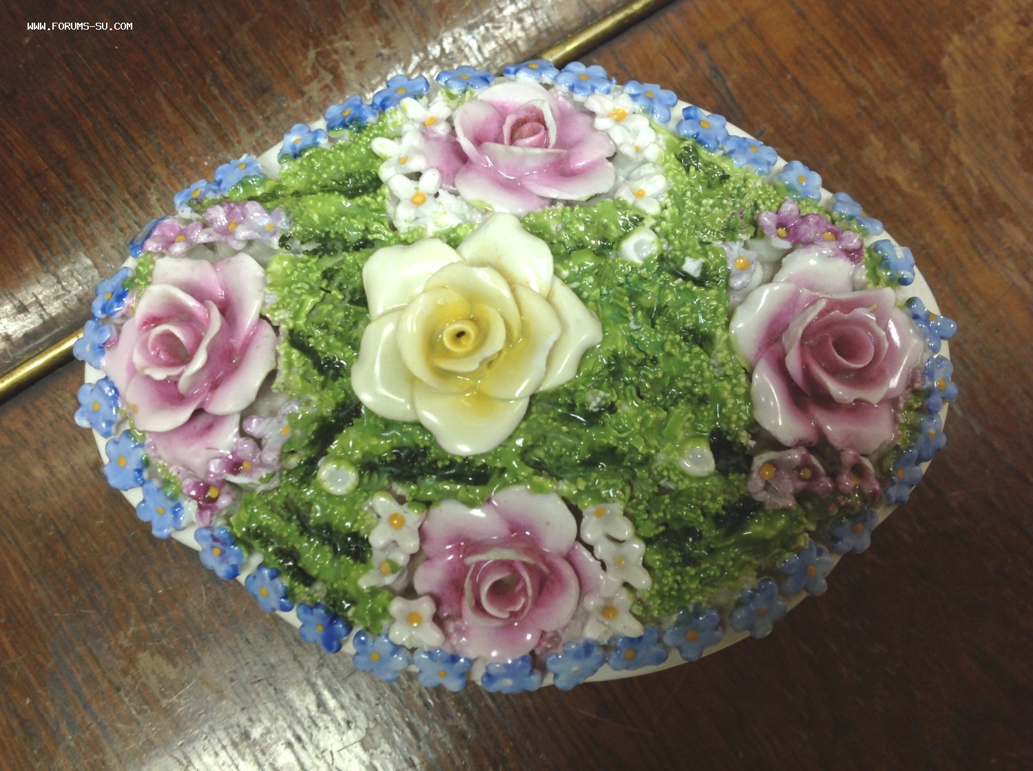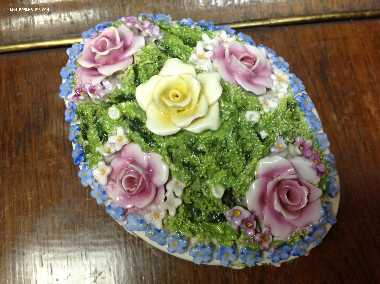 Размер 13,5 см на 10 см. Высота с крышкой 8,7 см. Есть скольчики по цветам..на ножках и внутри на крышке и внутреннем краешке шкатулки.. На фото показал... А в целом сочный приятный предмет.