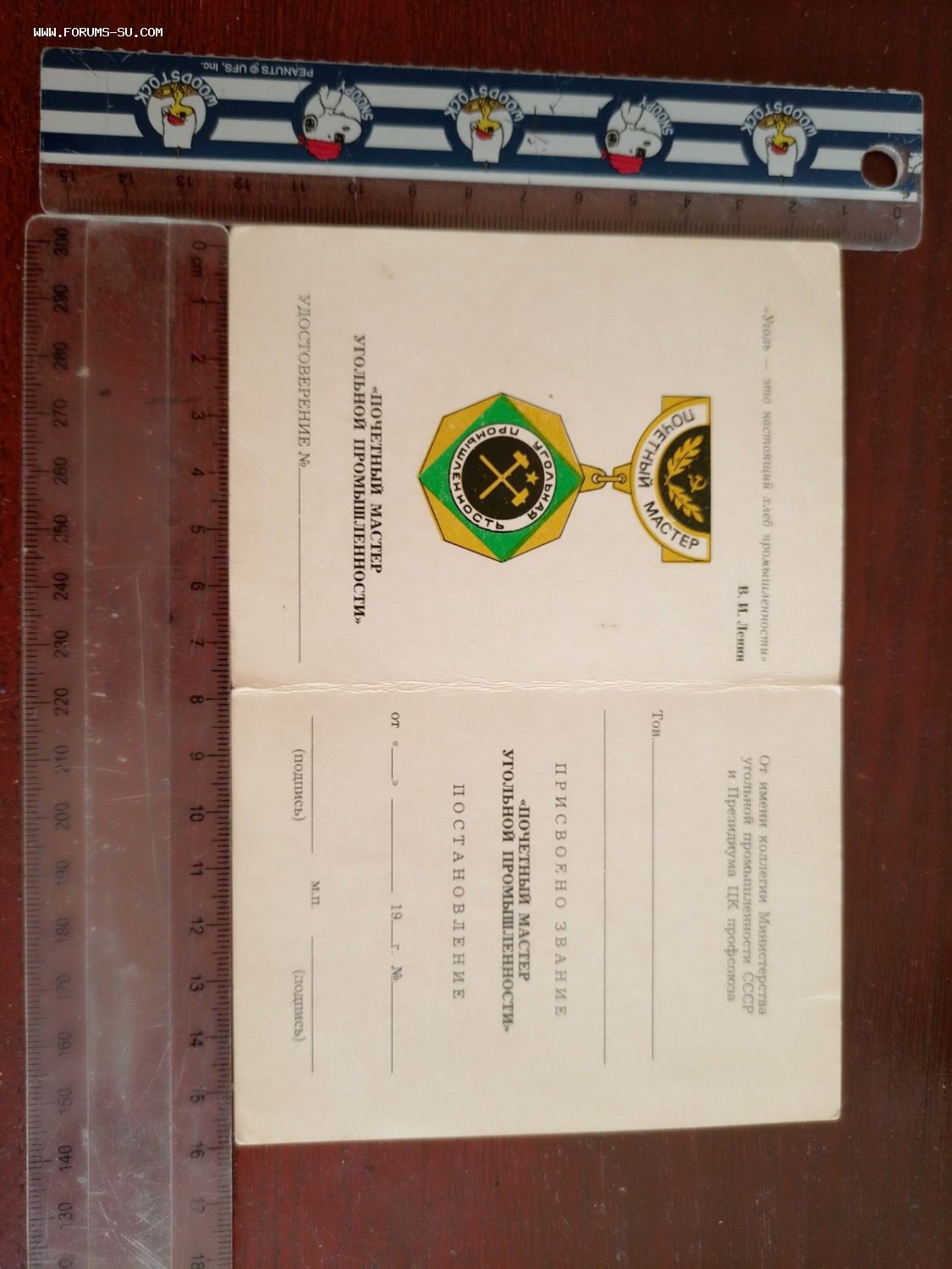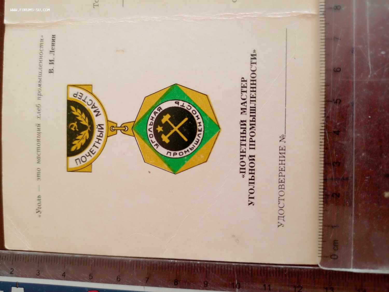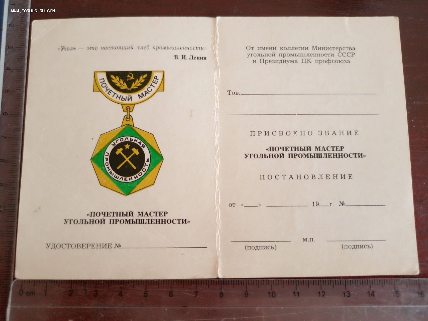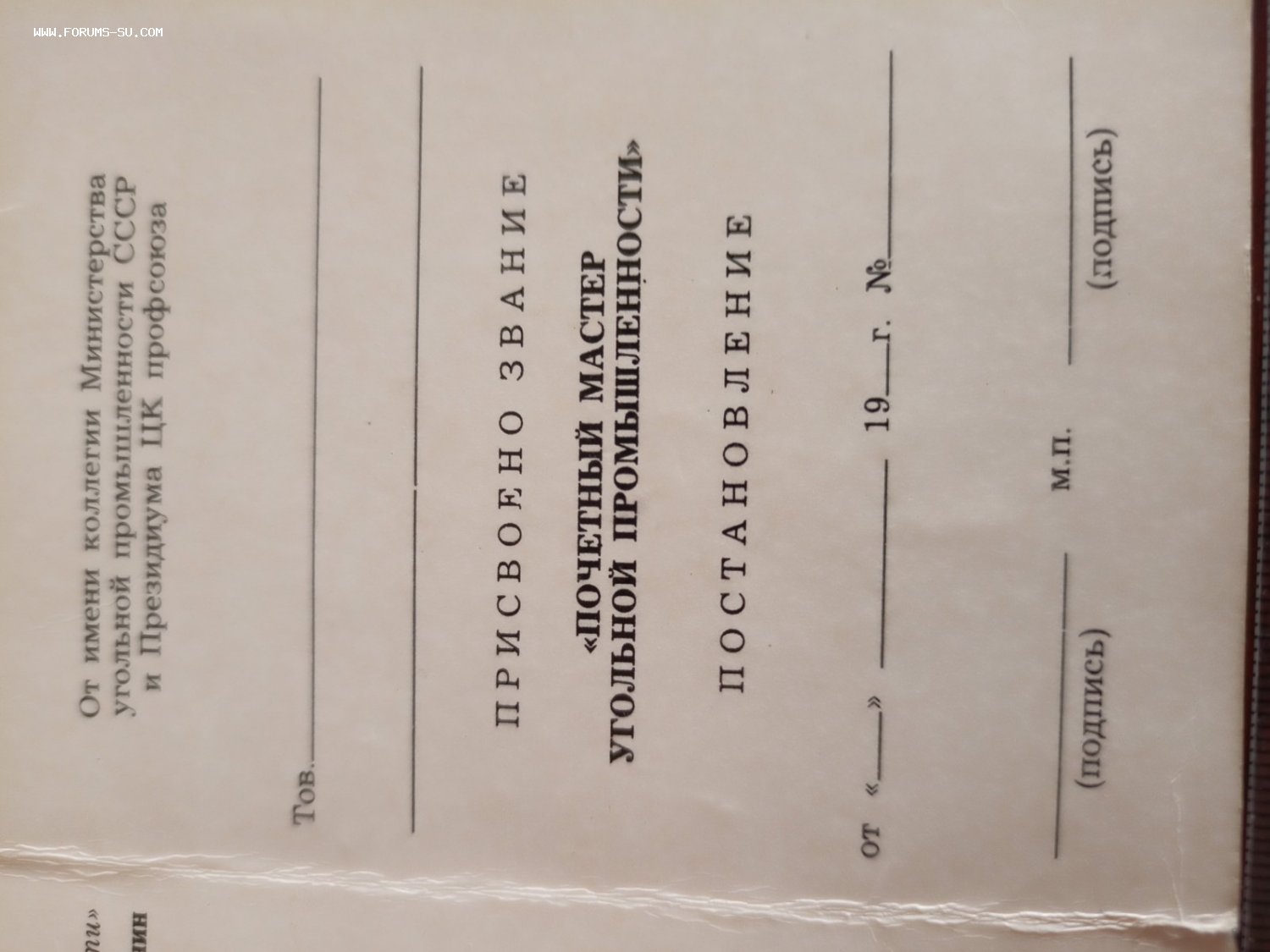 Незаполненное удостоверение присвоение звания Почетного Мастера Угольной Промышленности