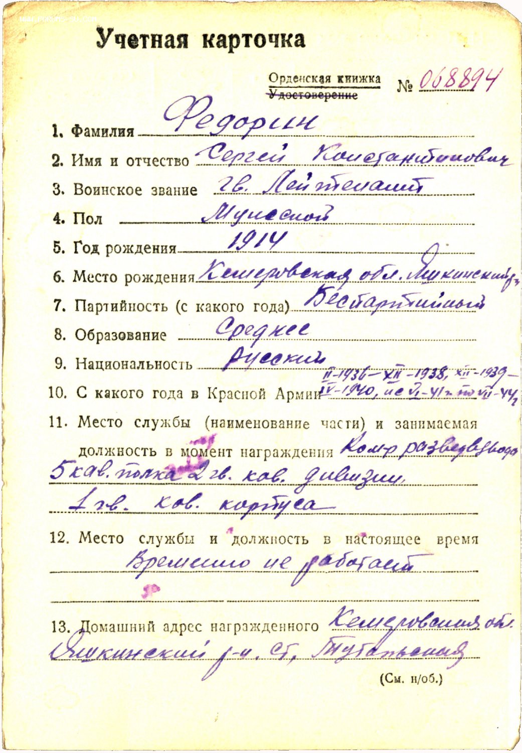 на кавалериста 1-го Гвардейского Кавалерийского корпуса генерала Белова, рейд по тылам противника с января по май 1942 г.