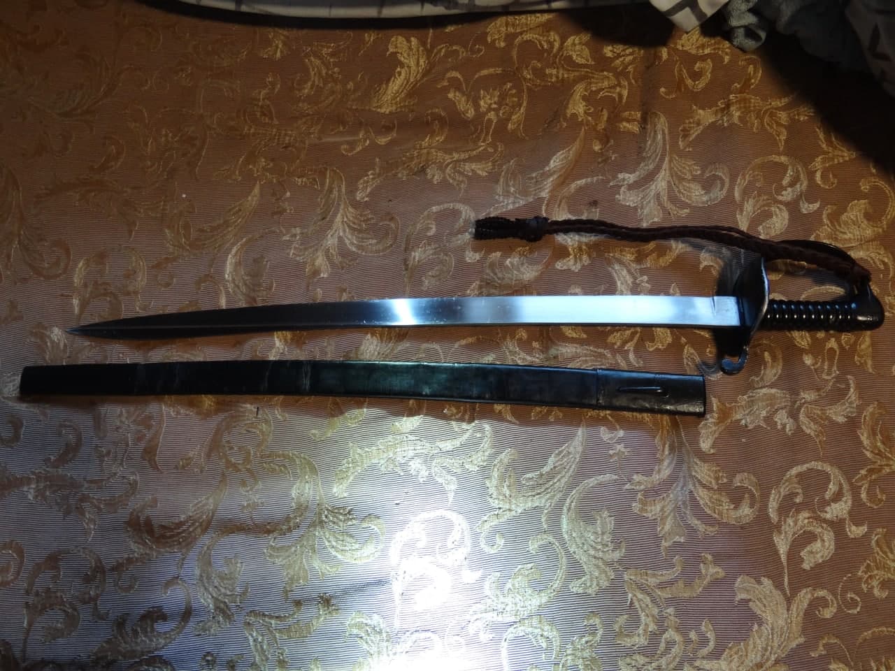 Предмет в хорошем состоянии, за исключением уставшего темляка, кожа ножен родная.