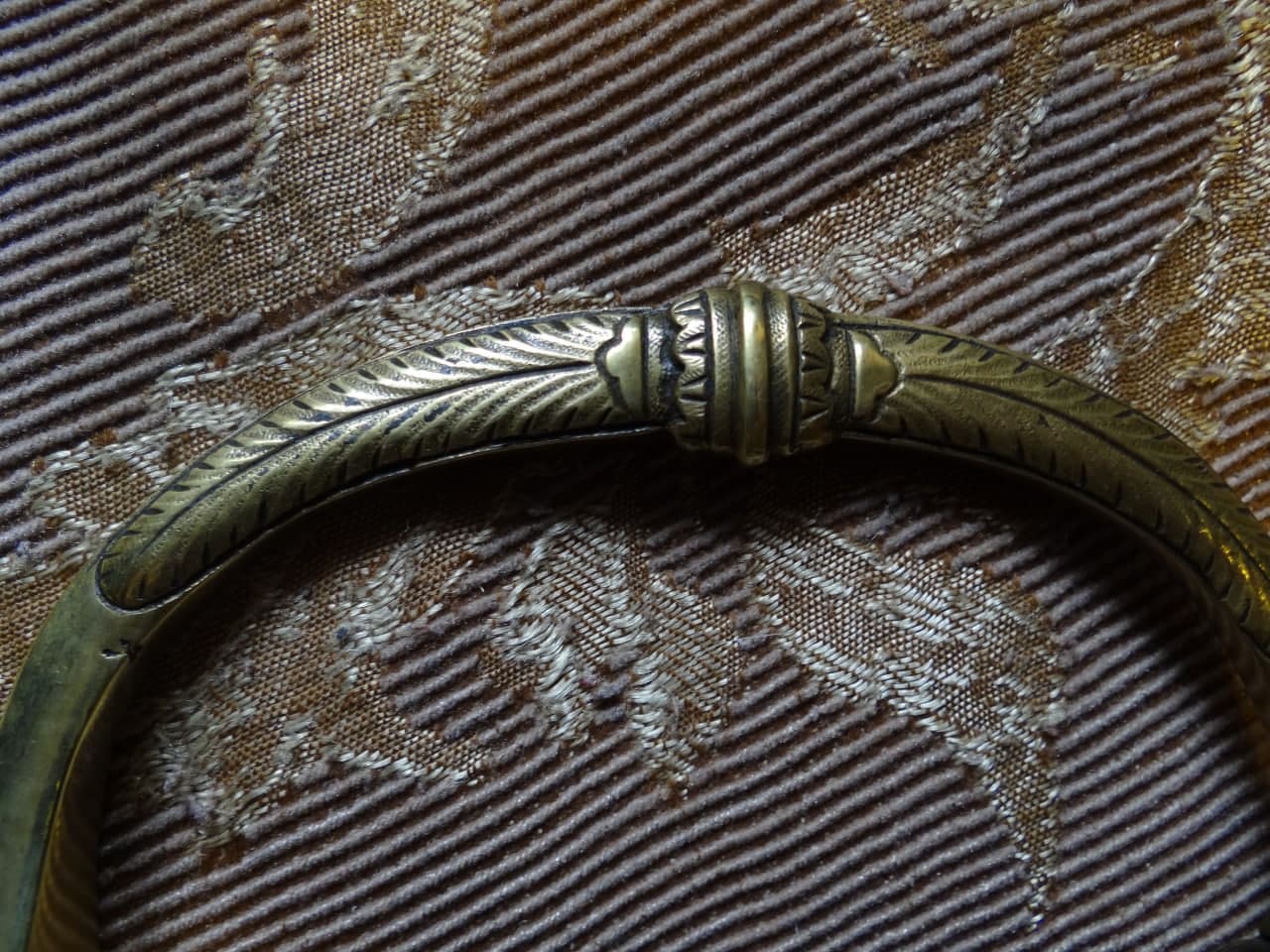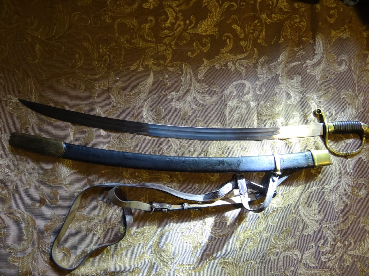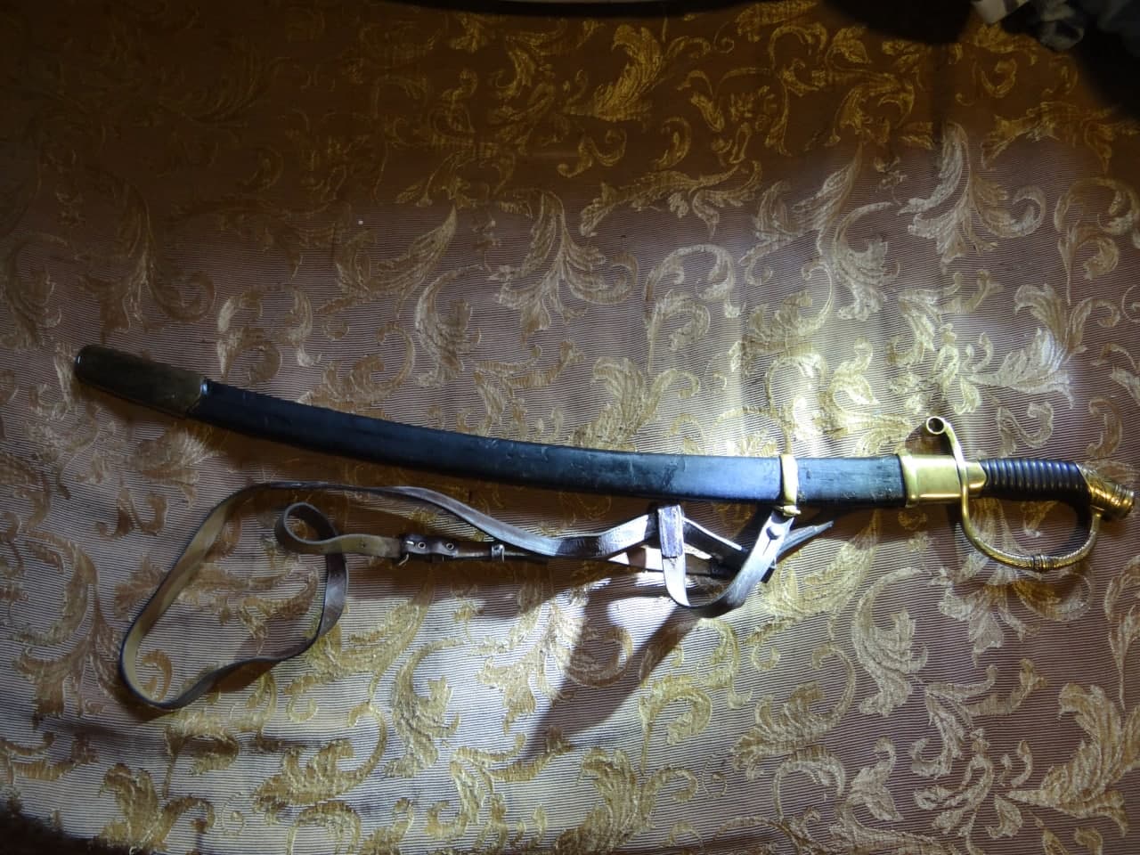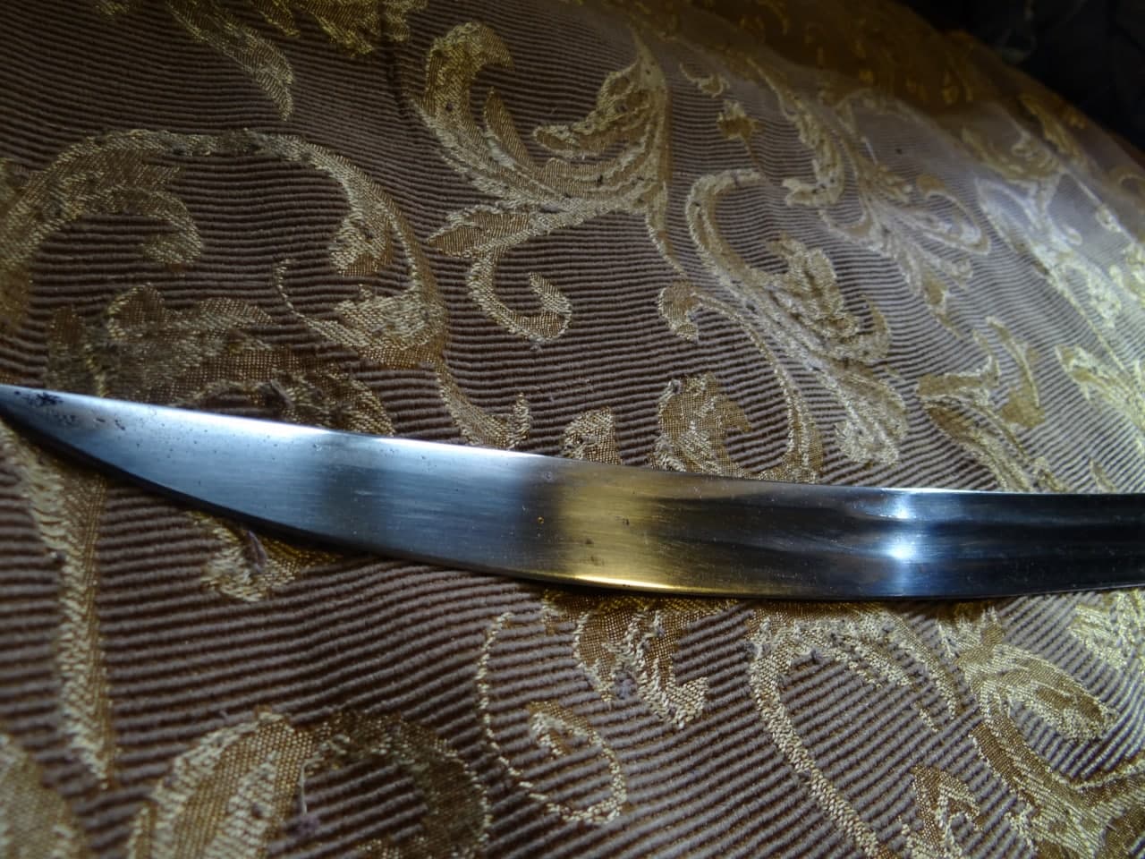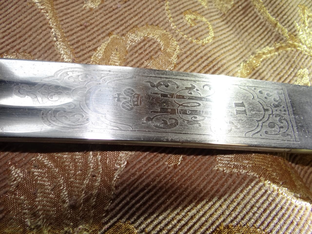 Реставрация скола на бекелите рукояти, реставрация наконечника ножен (все на фото).