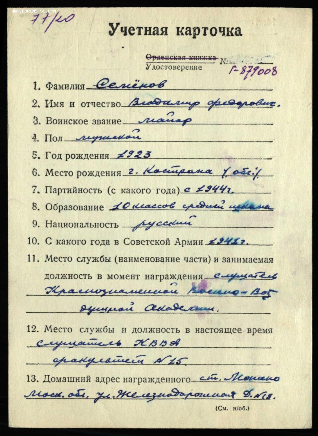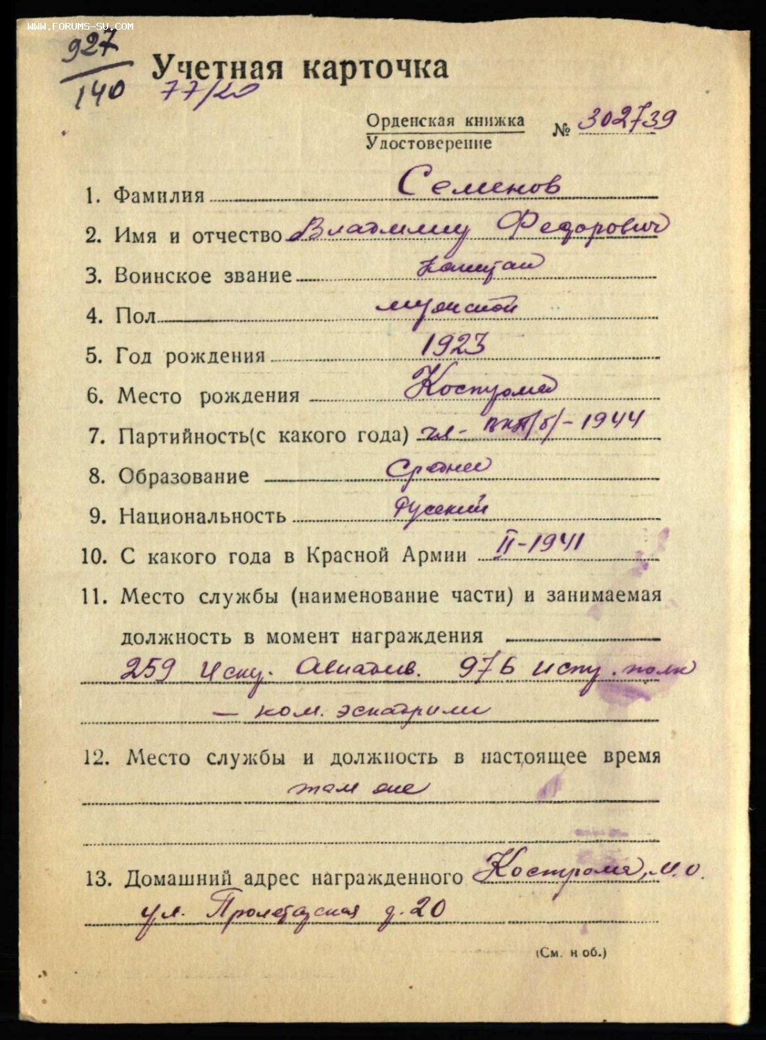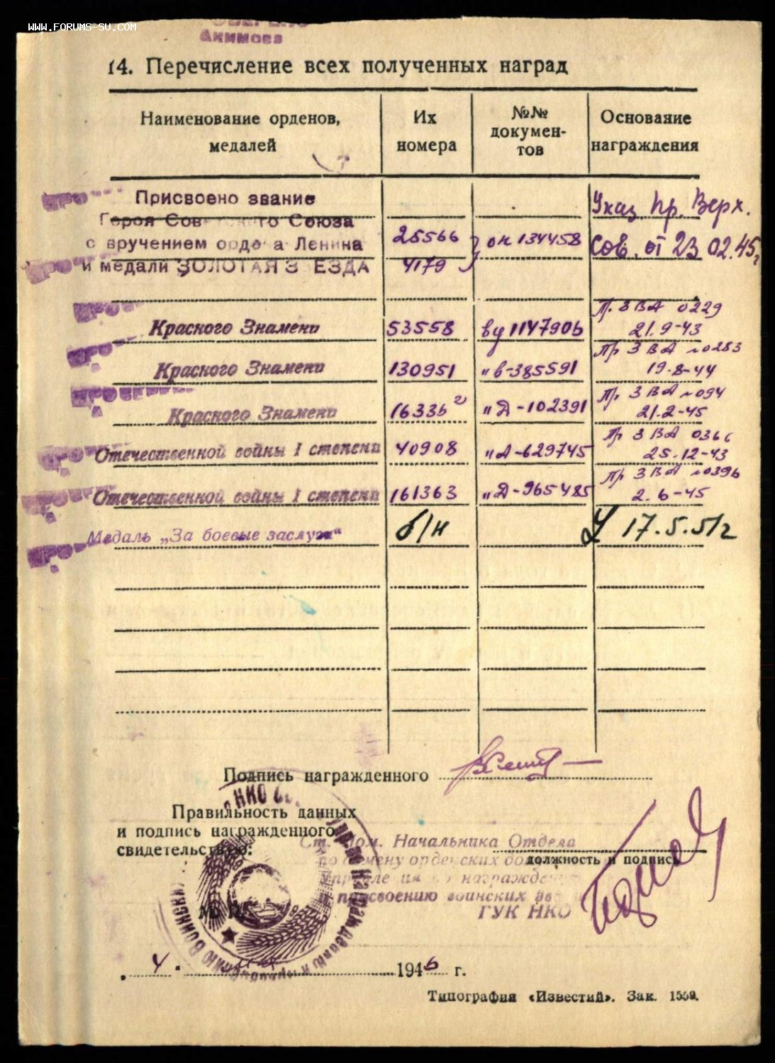 Вчера купил ОВ1 номер 174330 на ГСС Семенов Владимир Федорович. У кавалера две УК. Одна заведена в 1946 году (там нет моей отечки) и все наградные есть на подвиге народа. Другая заведена в 1951 году (там указана моя отечка) но не на подвиге народа, ни на памяти народа нет даты указа, или приказа, хотя во всех источниках она числится за кавалером. Протокол заказал, надеюсь найдут, но может кто то знает почему такая загадка именно с этой его отечкой, может корея?