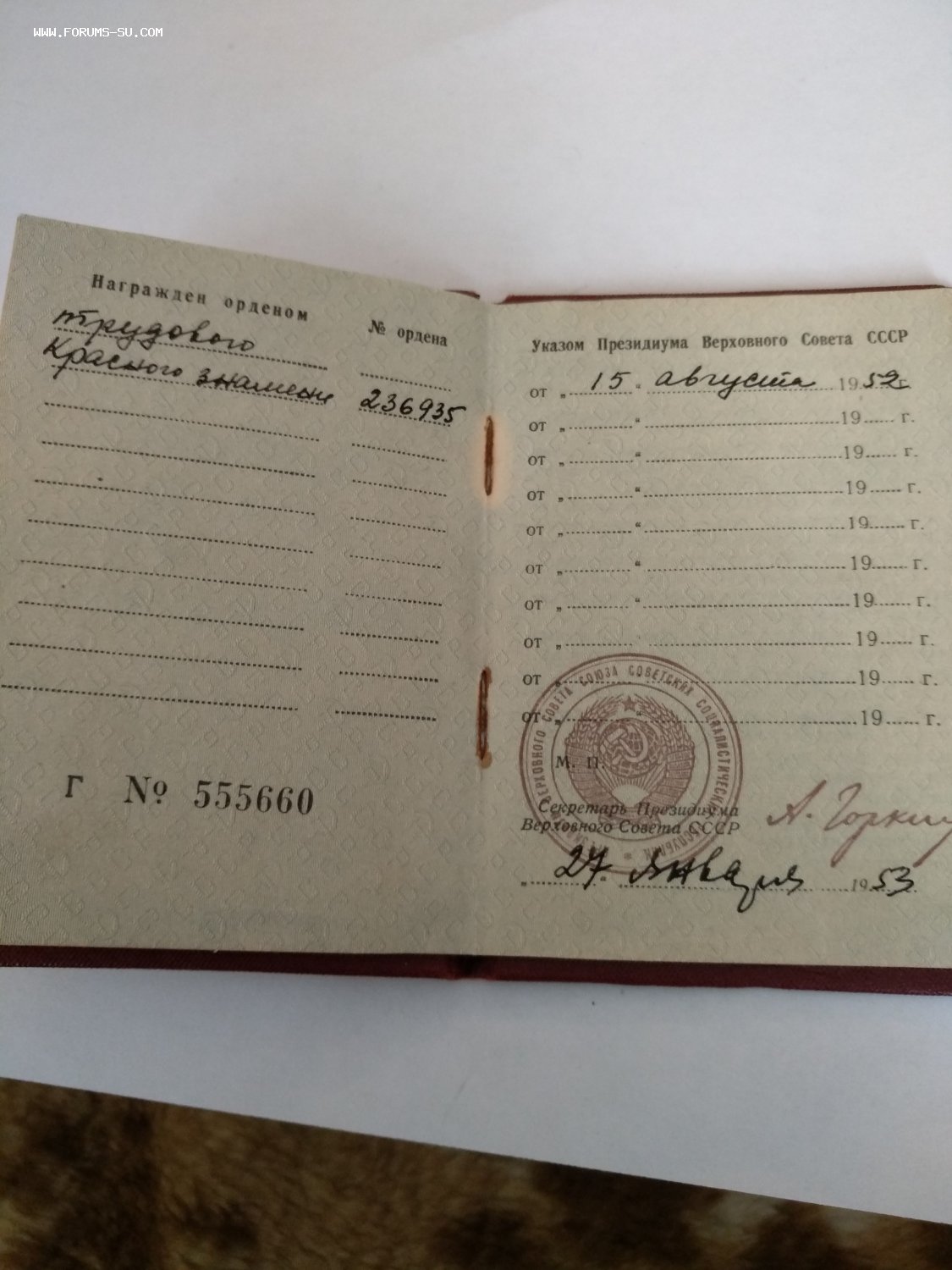 ТКЗ 236935 с Документом ТАШ - 25 май 2021 01:27.39 × Мини профиль пользователя ТАШ Сообщения: 4596 Зарегистрирован: 06 июн 2009 15:23.51 Откуда: Подмосковье Статус: Не в сети - 25 май 2021 01:27.39 #6527995 Доставка по РФ за счёт покупателя. Фото