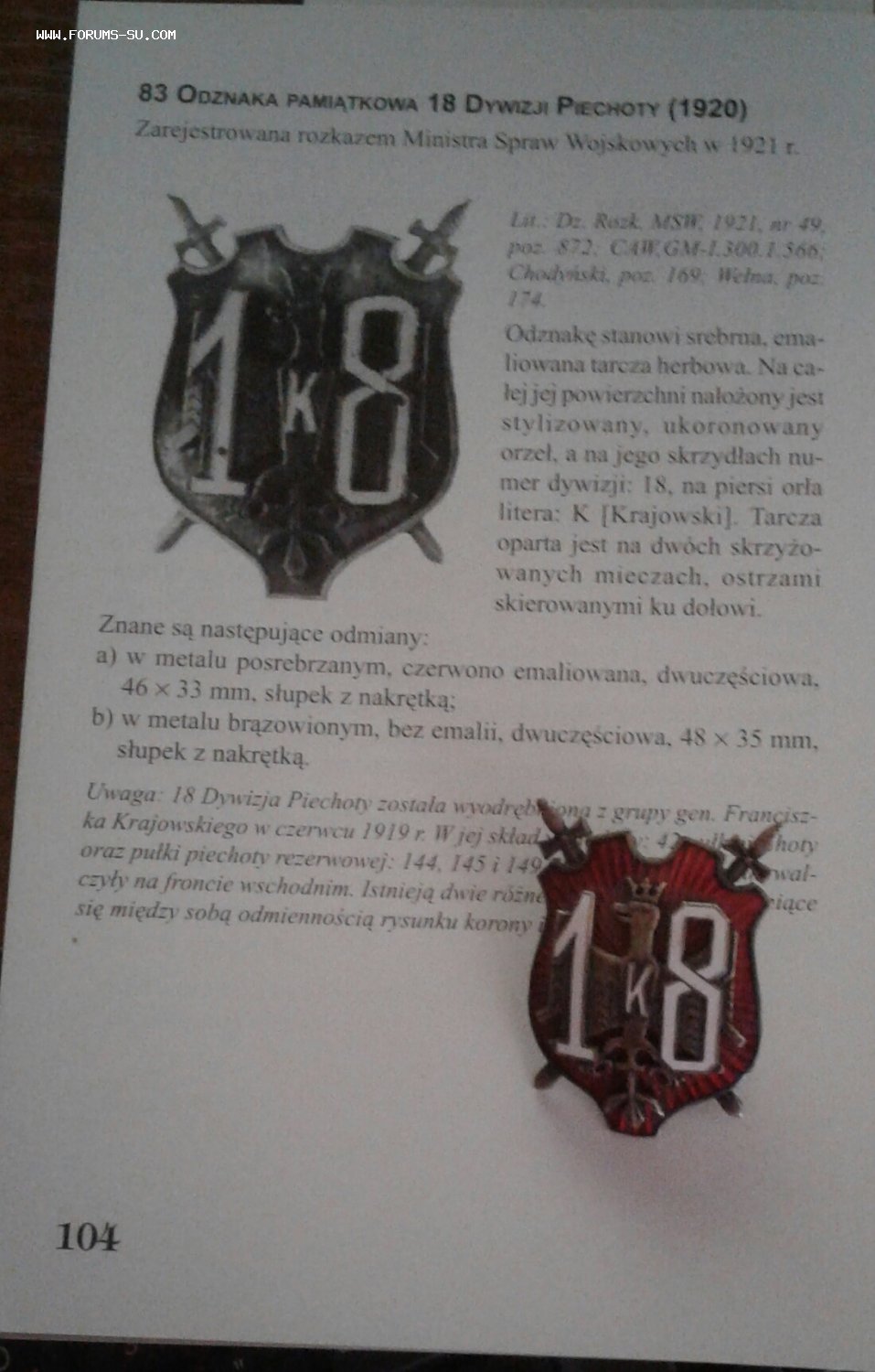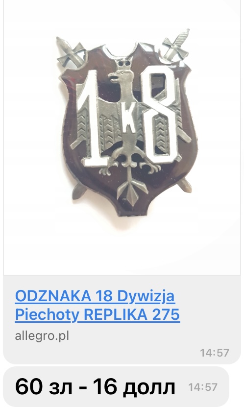 Офицер.знак 18-й пехотной дивизии,Польская республика 1920г.