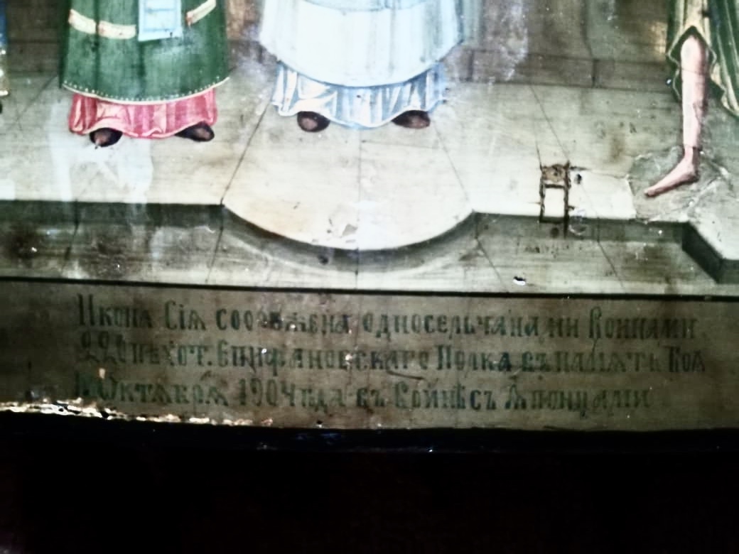 Икона Сия сооружена односельчанами Воинами 220 пехотного Епифановского полка в память боя 1 октября 1904 года в войне с Японцами. Предлагайте мпц по ходу.