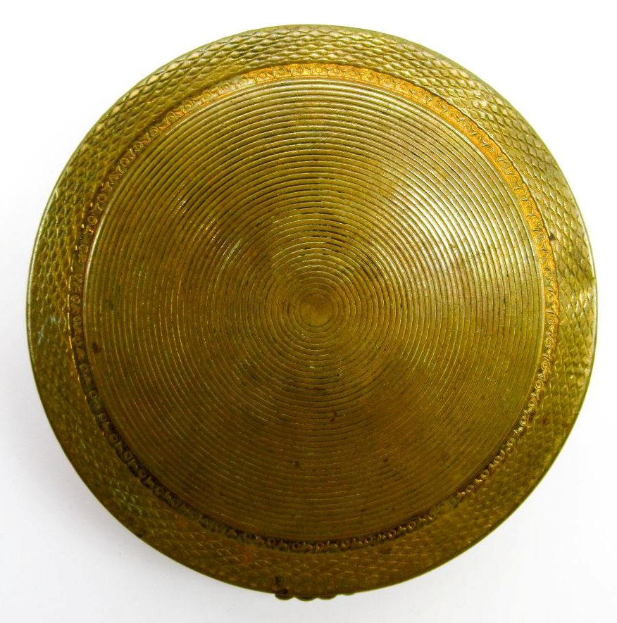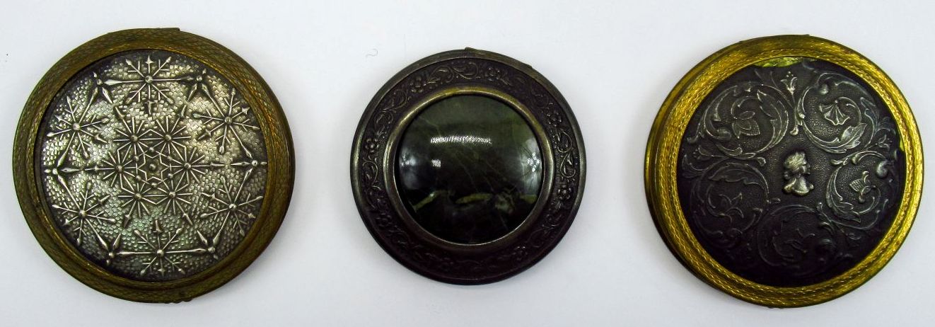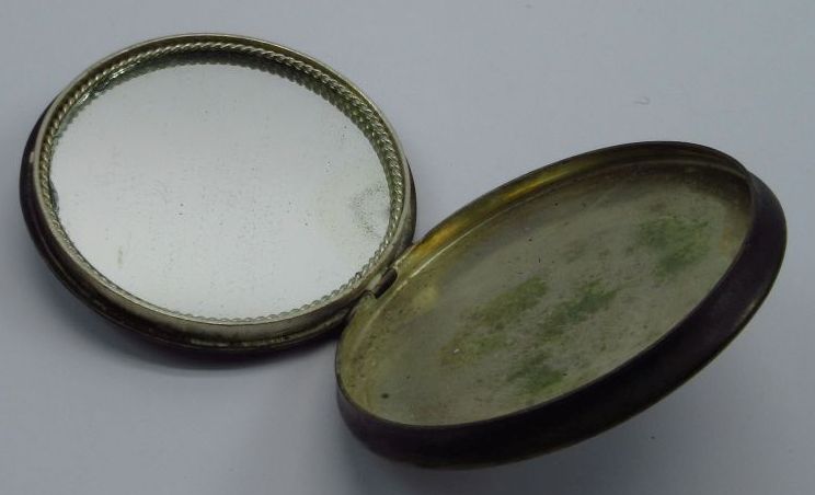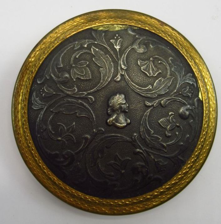 Пудреница с мельхиоровой вставкой,латунь,диаметр 8см