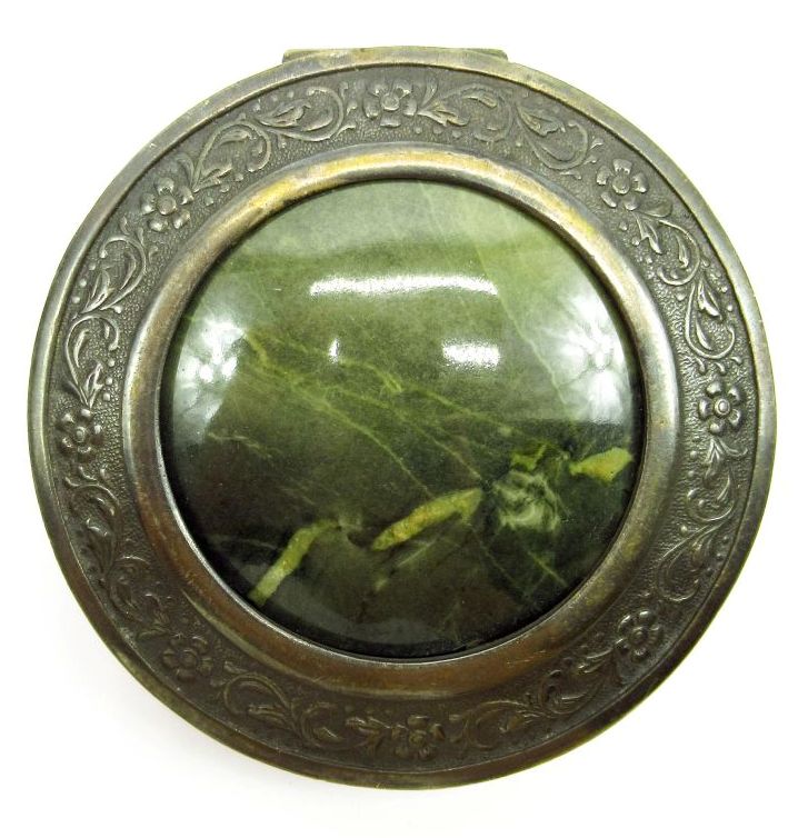 Пудреница мельхиор,с каменной вставкой, диаметр 7см