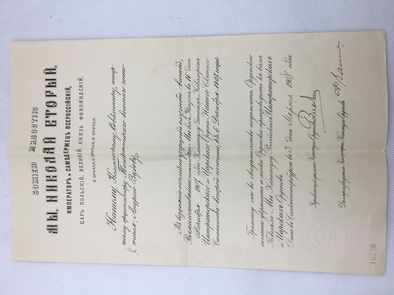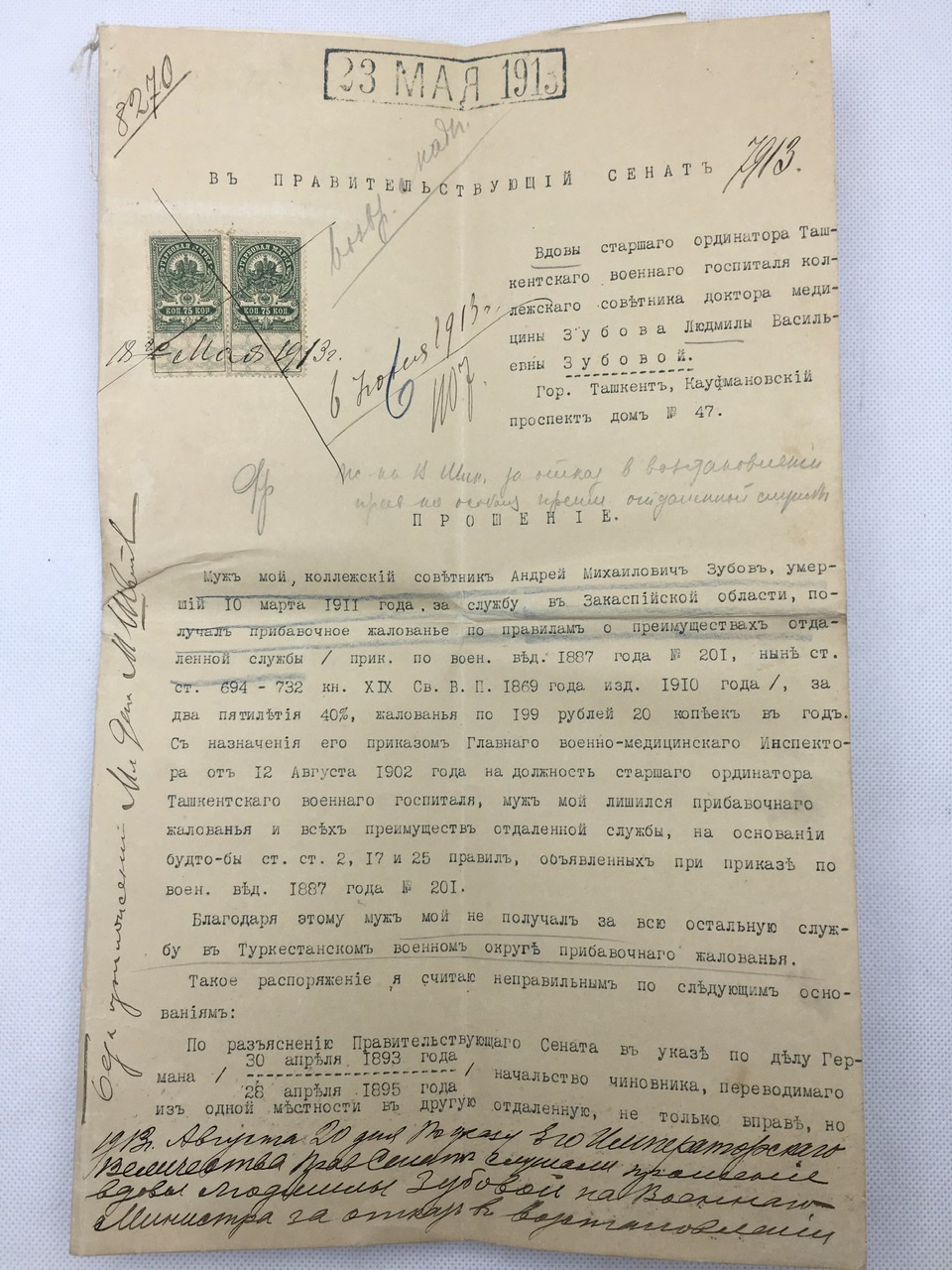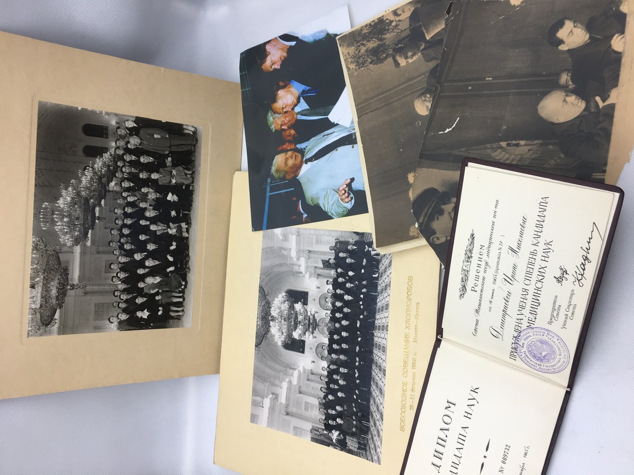 Фото кавалера, такса на услуги водолечебницы госпиталя, письмо об увеличении жалования, свидетельство об окончании гимназии дочерью, 4 некролога из газет