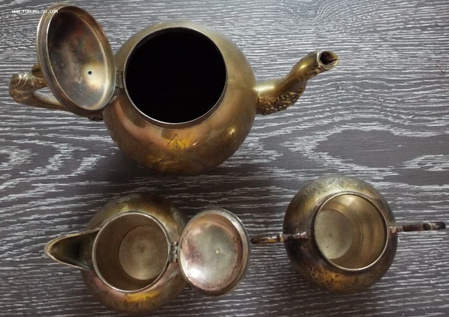 чайник,соусник,сахарница,латунь den85 - 27 июл 2021 16:54.31 × Мини профиль пользователя den85 Сообщения: 26018 Зарегистрирован: 24 июл 2009 09:18.19 Откуда: СССР Статус: Не в сети - 27 июл 2021 16:54.31 #6540757 у соусника небольшая вмятинка сбокумпц набора-7000р Фото