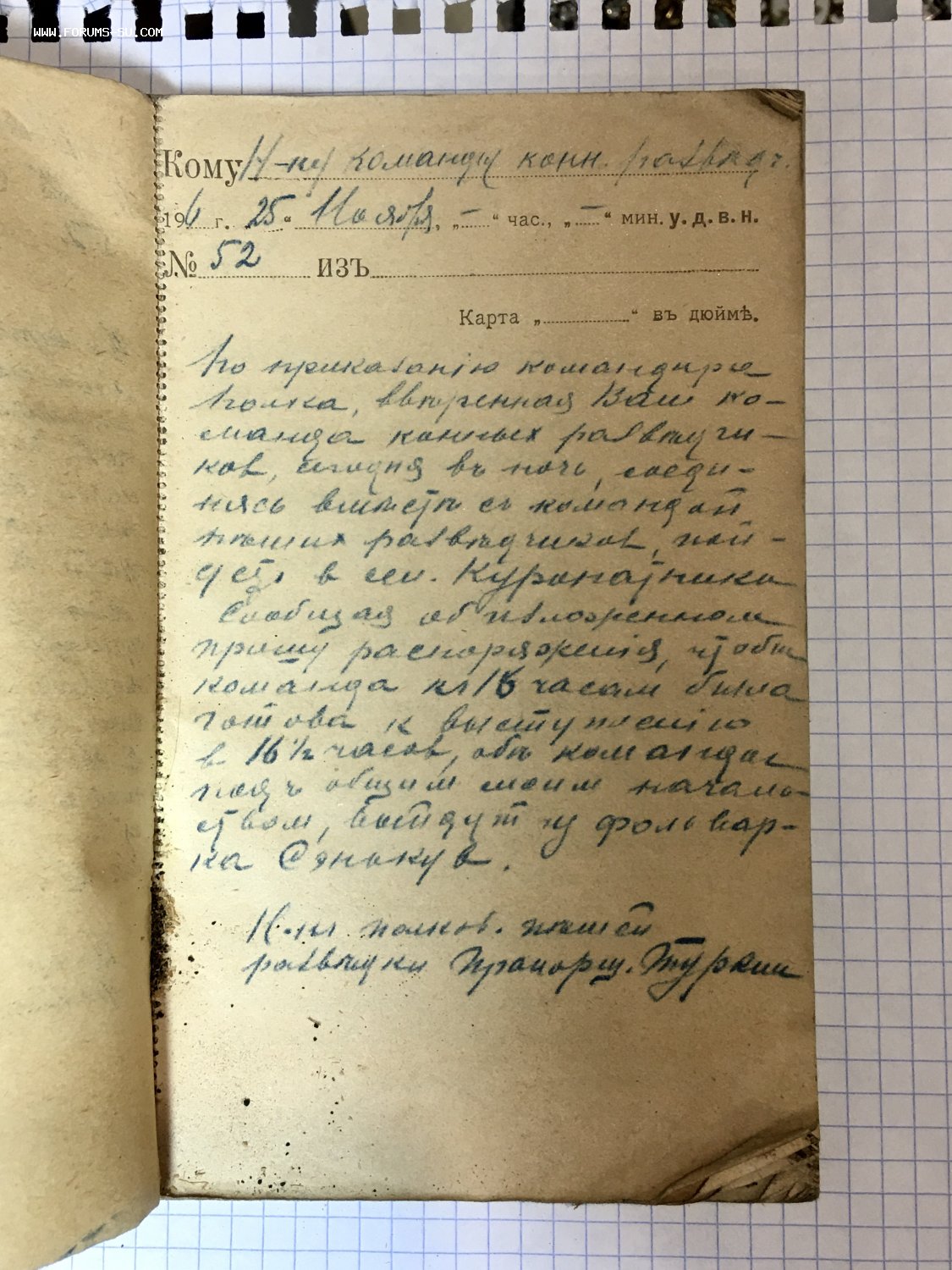 Полевая книжка начальника команды пеших разведчиков. 1916 г. Guron - 23 авг 2021 19:07.07 × Мини профиль пользователя Guron Сообщения: 8440 Зарегистрирован: 24 мар 2010 17:33.46 Откуда: Россия Статус: Не в сети - 23 авг 2021 19:07.07 #6546361 Сообщения от номера 51 (первое в книжке) до номера 65.Некоторые на двух и более страницах. Фото