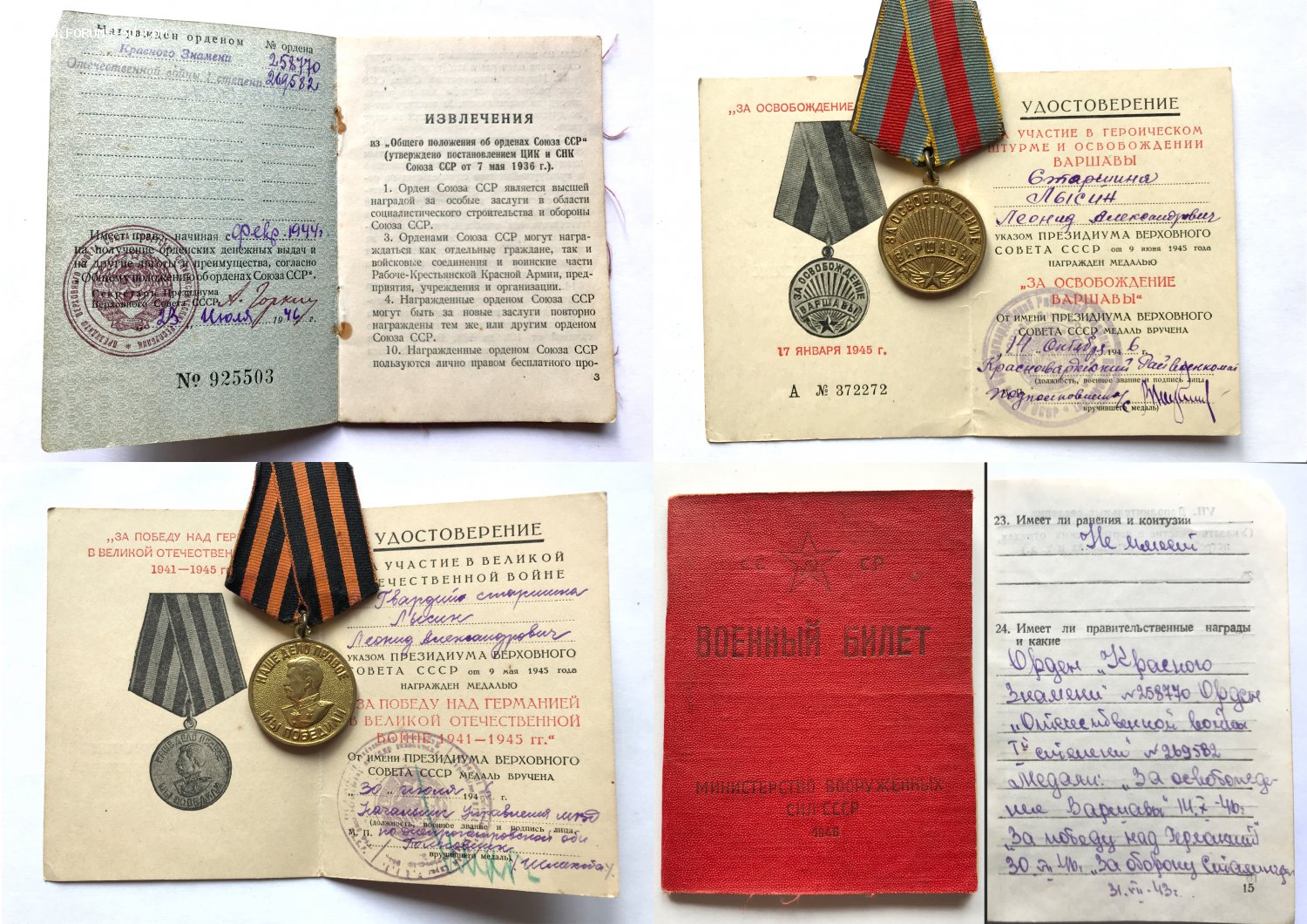 Здравствуйте. Предлагаю в коллекцию комплект на одного человека с документами, военным билетом и грамотами благодарности.