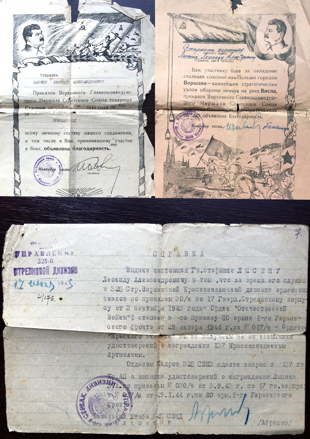 • 10 листов Благодарности Верховного Главнокомандующего