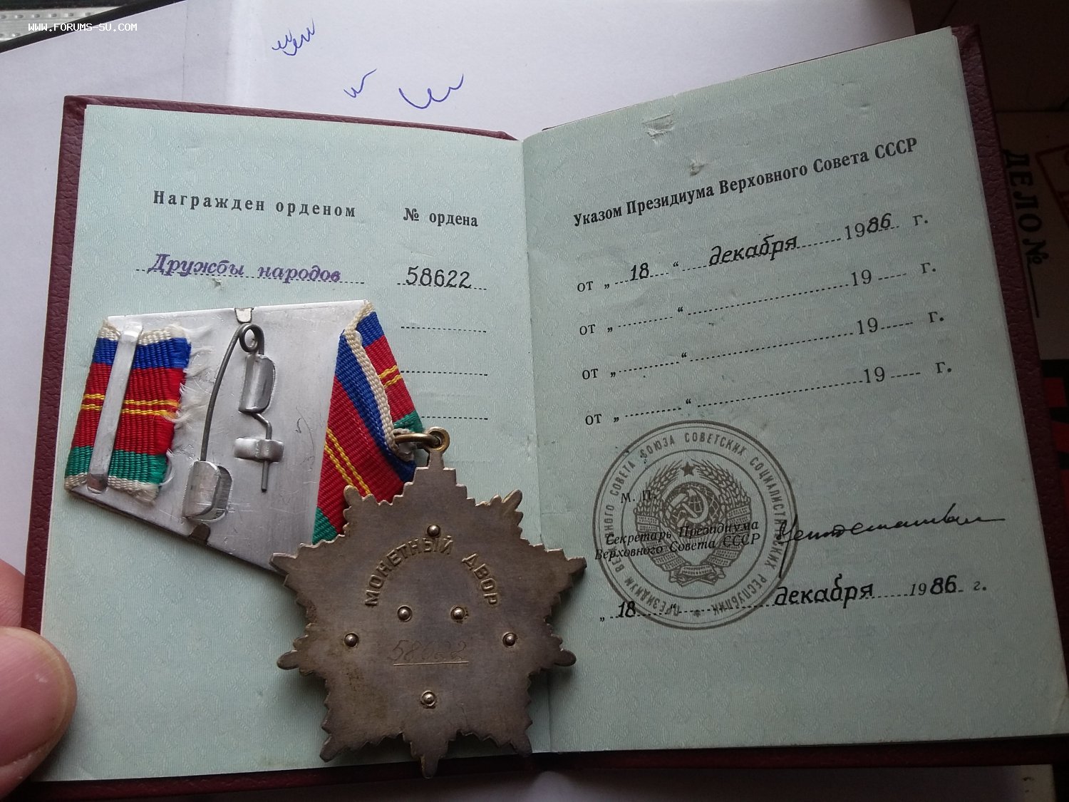 Сомтояние: орден люксище. Док имеет вмятинки на бумаге