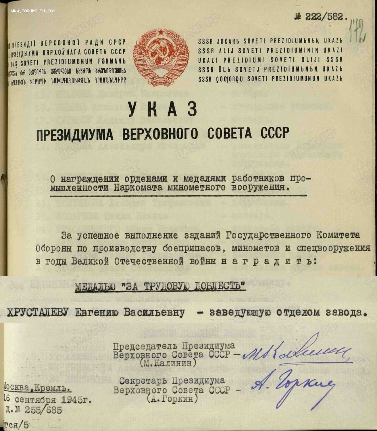 Кремлёвское вручение. Вырезка из указа- копия в цифровом виде.