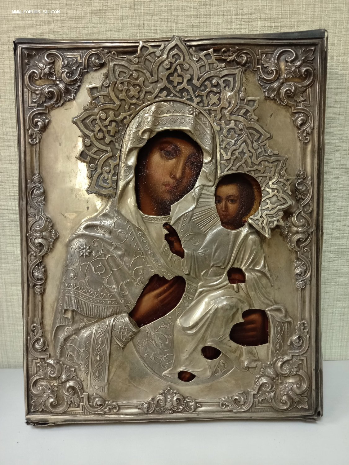 сама икона дерево. левкас. темпере. оклад кованный. серебро 84 пробы. клейма 1862 г на иконе размеры самой иконы 2.5 на 17.5 на 22 см. Вес оклада 123 гр