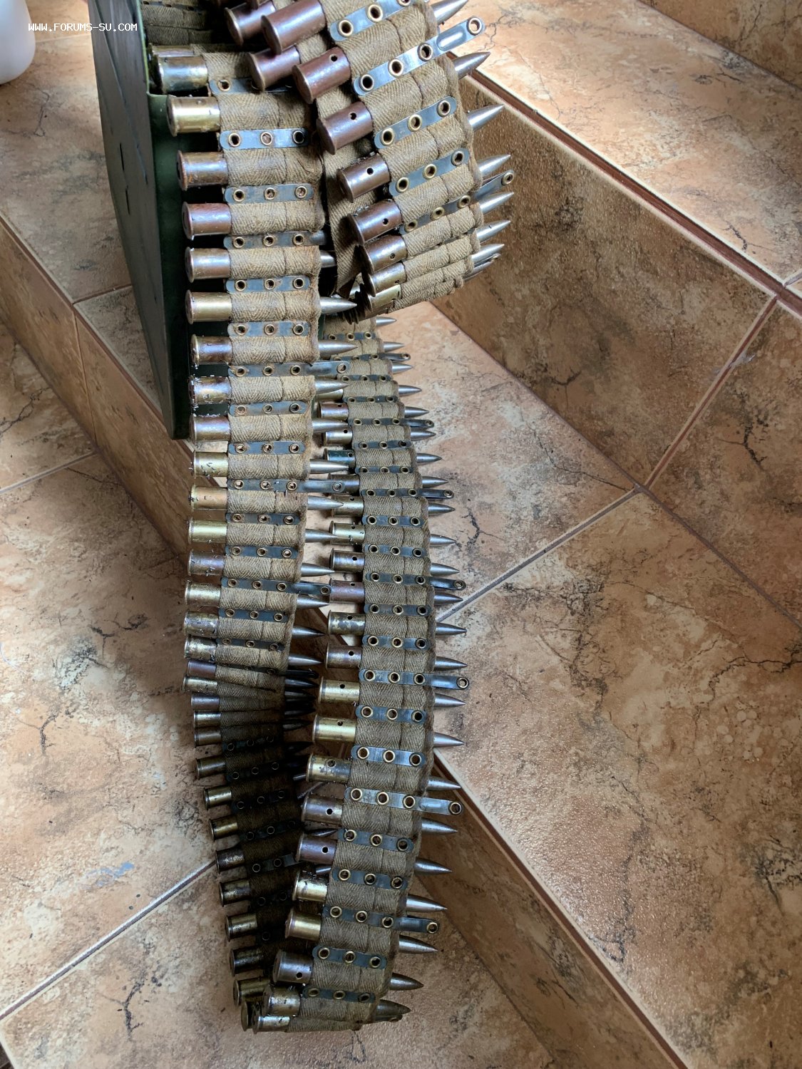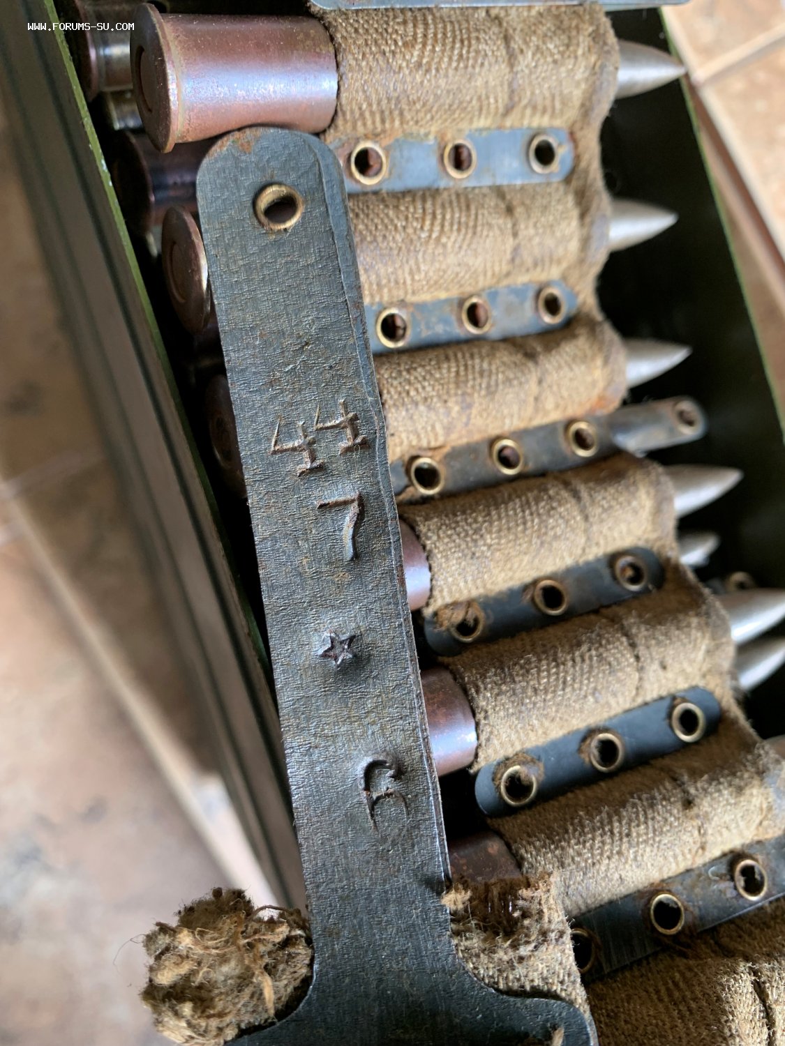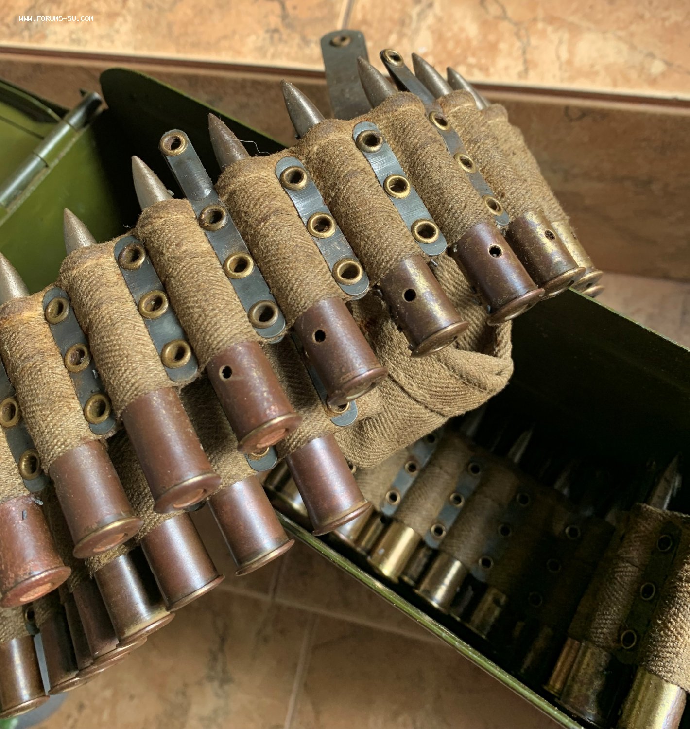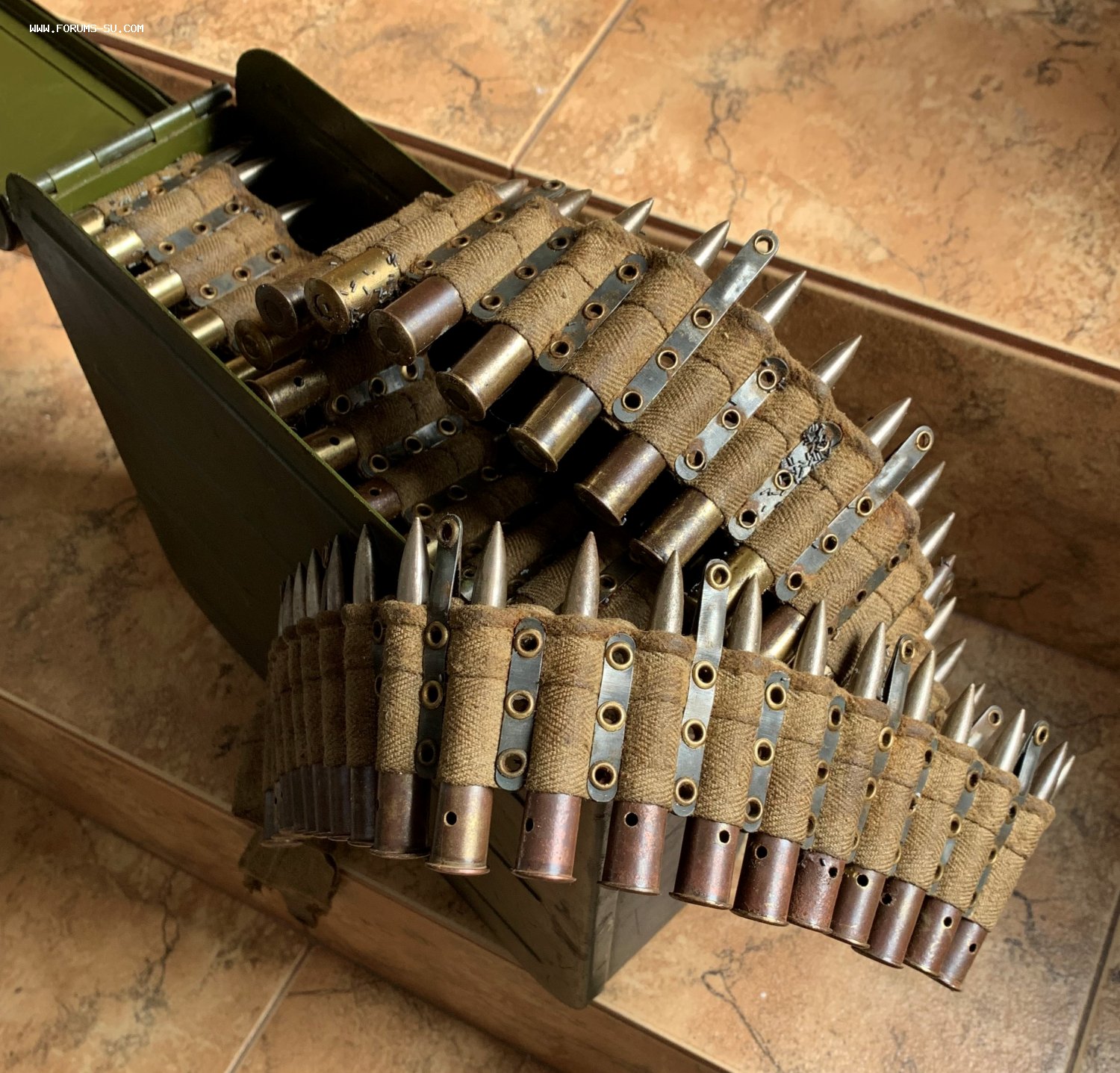 Пулеметная лента с ммг патронами в ящике к пулемету Максим.