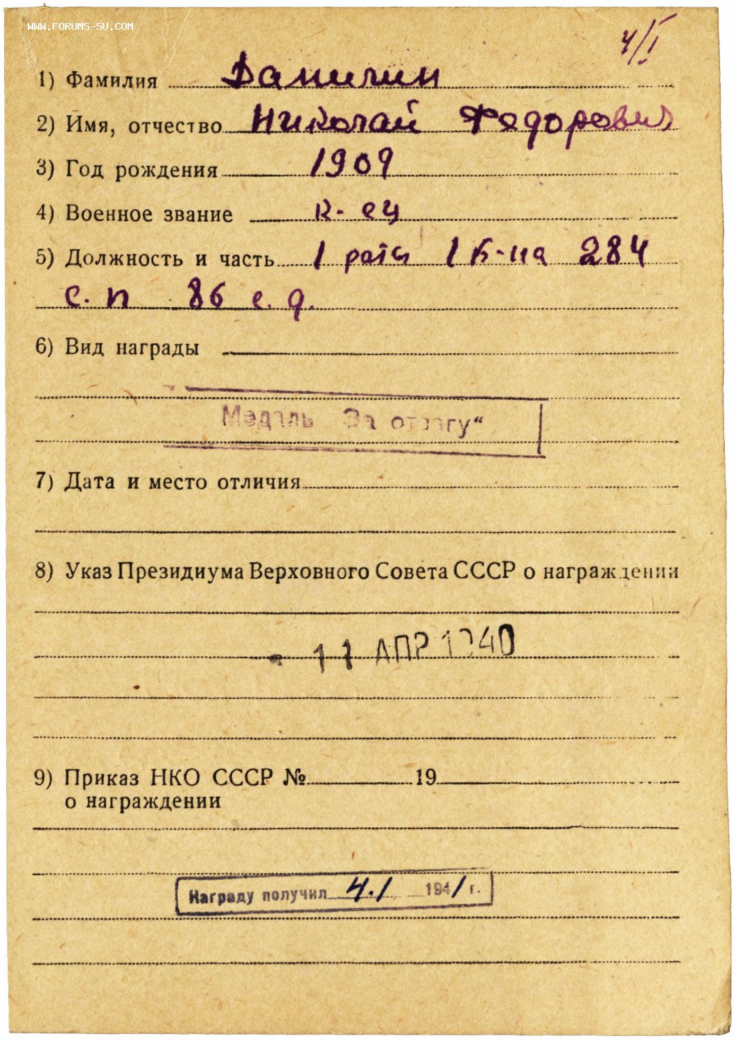 19372 Данилин Н.Ф. 04.01.1941 г. 019890