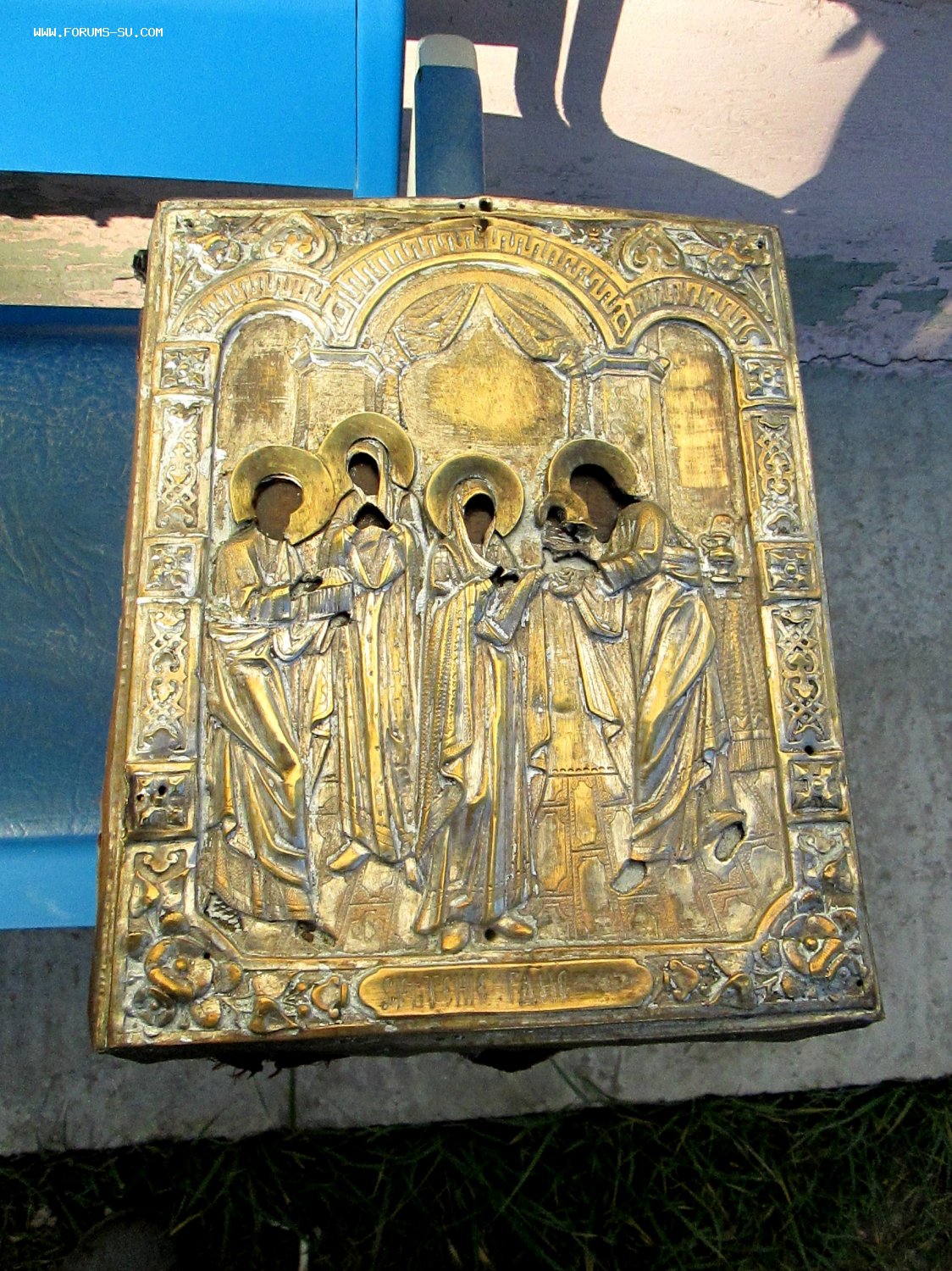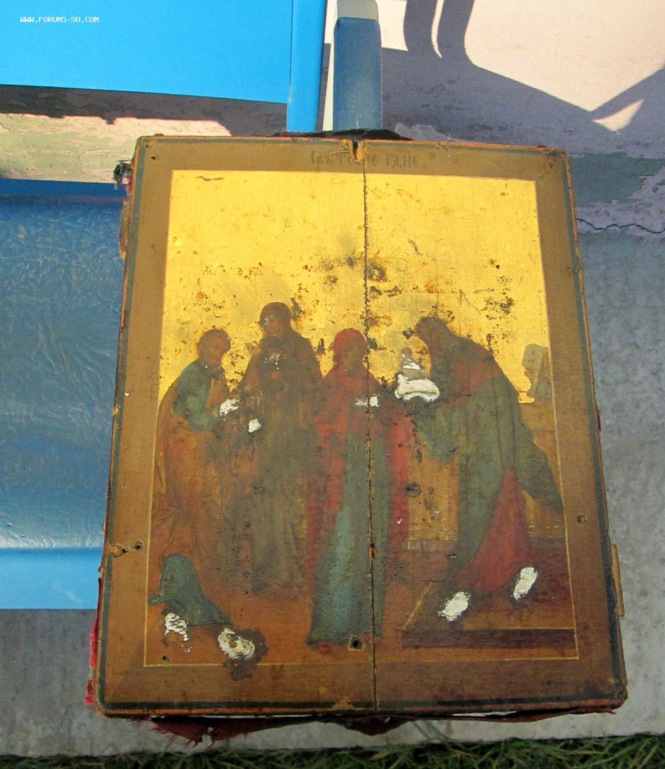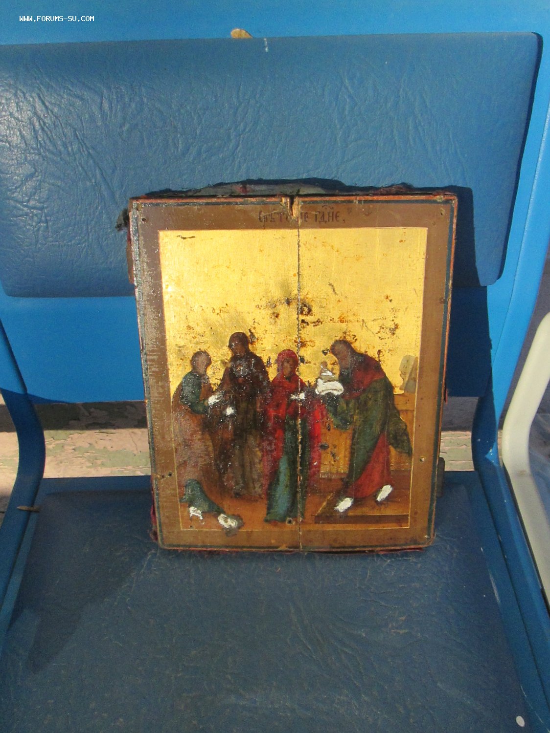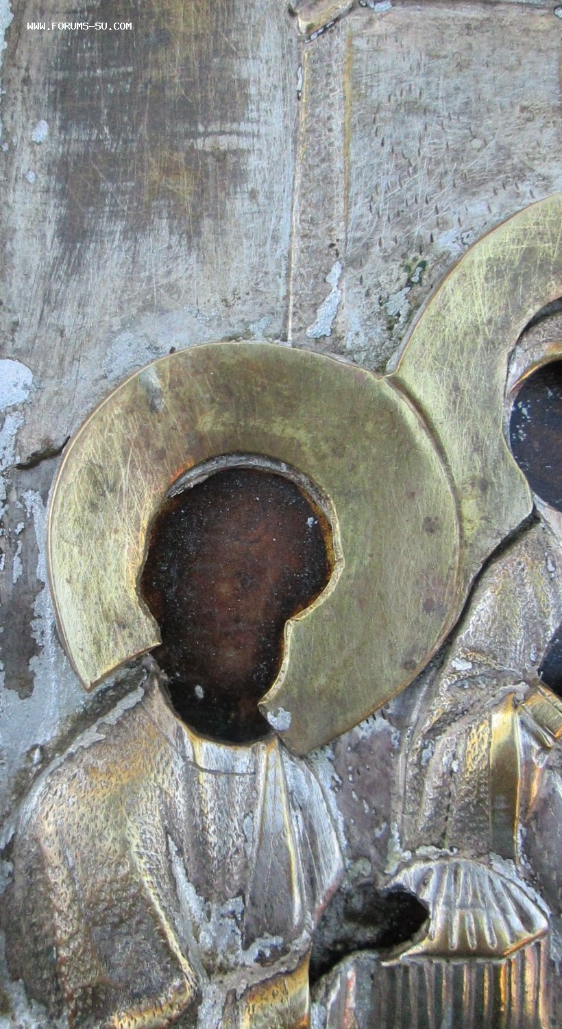 Икона "Сретение Господне" Живопись на золоте, без реставрации.первая половина 19 век Оклад очень толстый и объемный.
