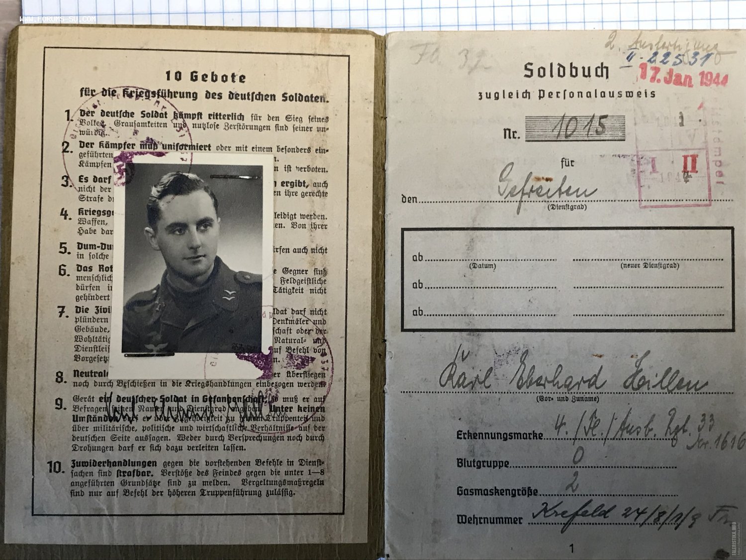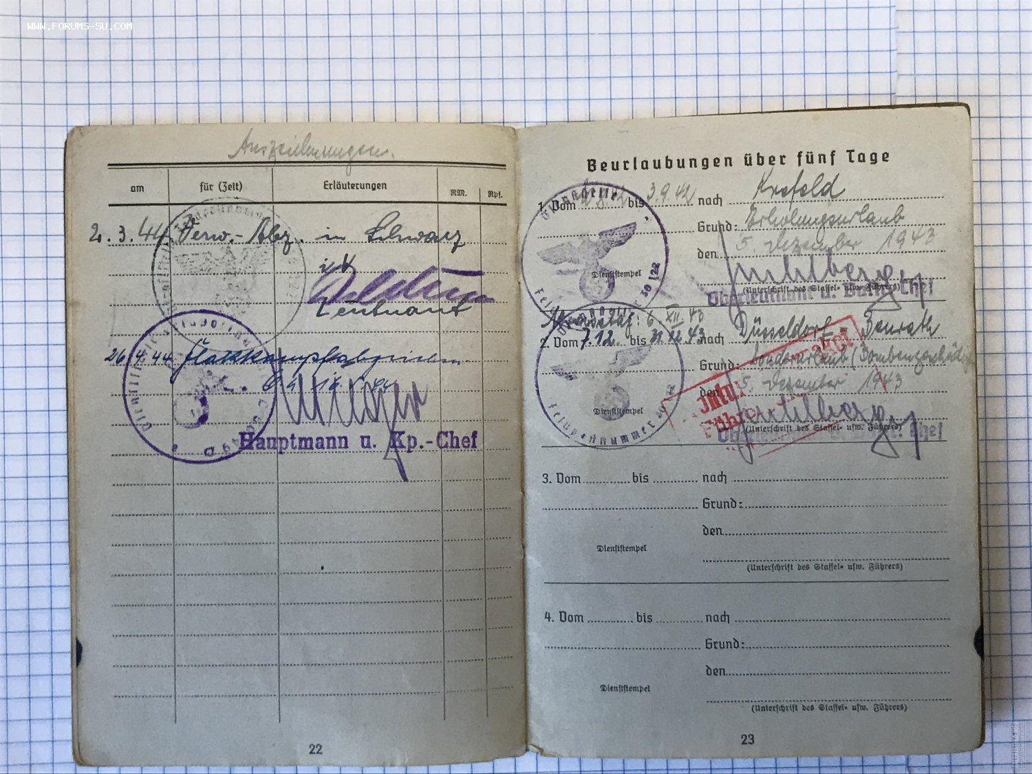 Предложу по РФ зольдбух на штрафника люфтваффе и 5-го особого егерского батальона, ну очень не частый зольдбух, еще и с редкими записями о награждении (их вообще старались ничем не награждать), в хорошем сохране, скрепки держат хорошо и утерь страниц нет, с фото.