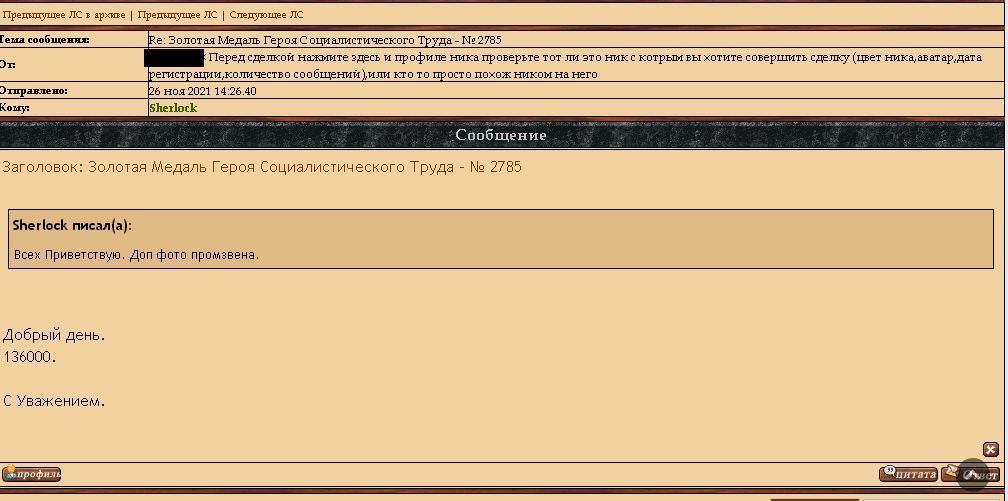 Предлагаю Золотую Медаль Героя Социалистического Труда - № 2785