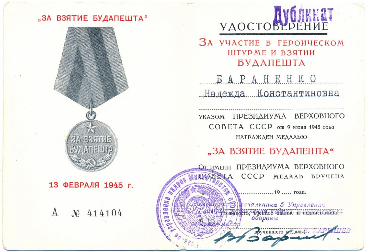 Вена - не дубликат. Выдана в военкомате города Днепропетровск. Остальные два дока с подписью генерала, заместителя начальника пятого управления главного управления кадров министерства обороны СССР.