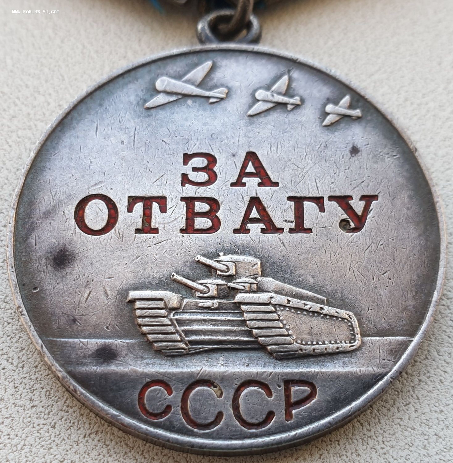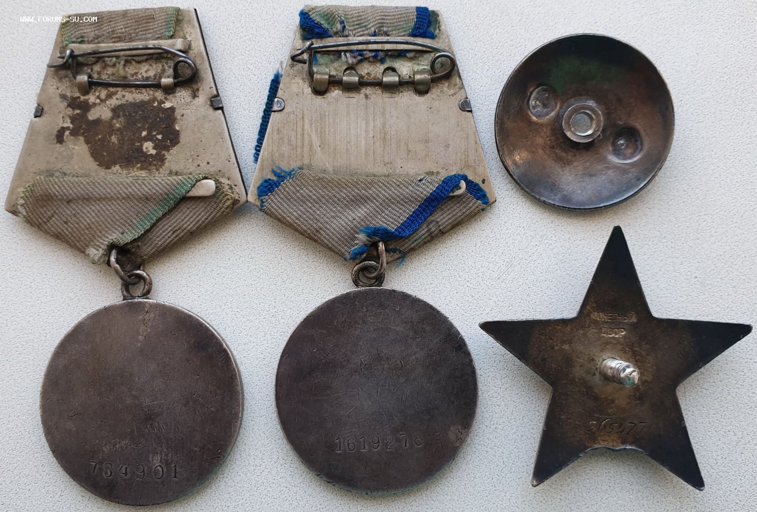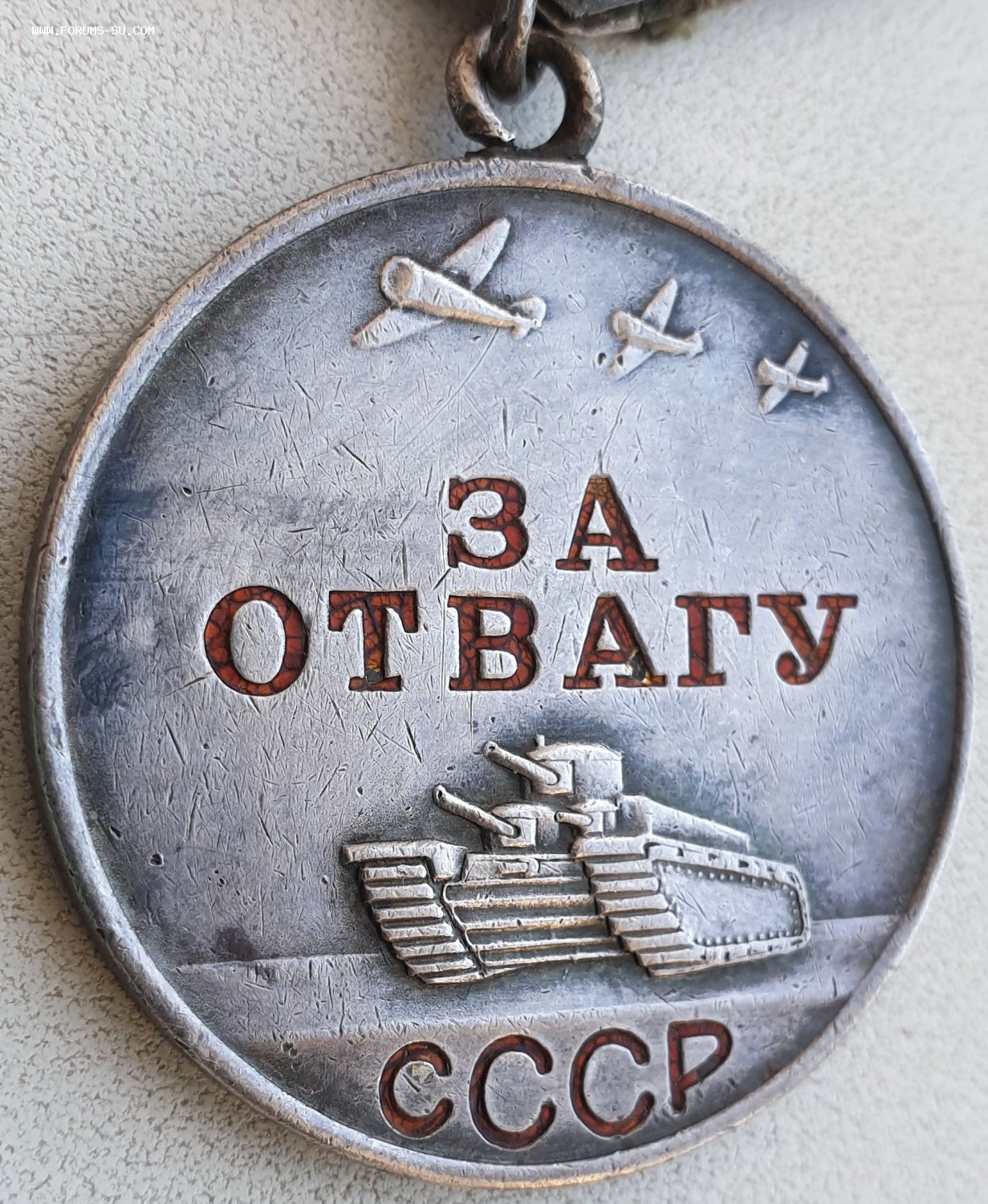 Звенья у медалей целые. У ранней отваги с одной стороны ухо отпаялось - на сканах видно.