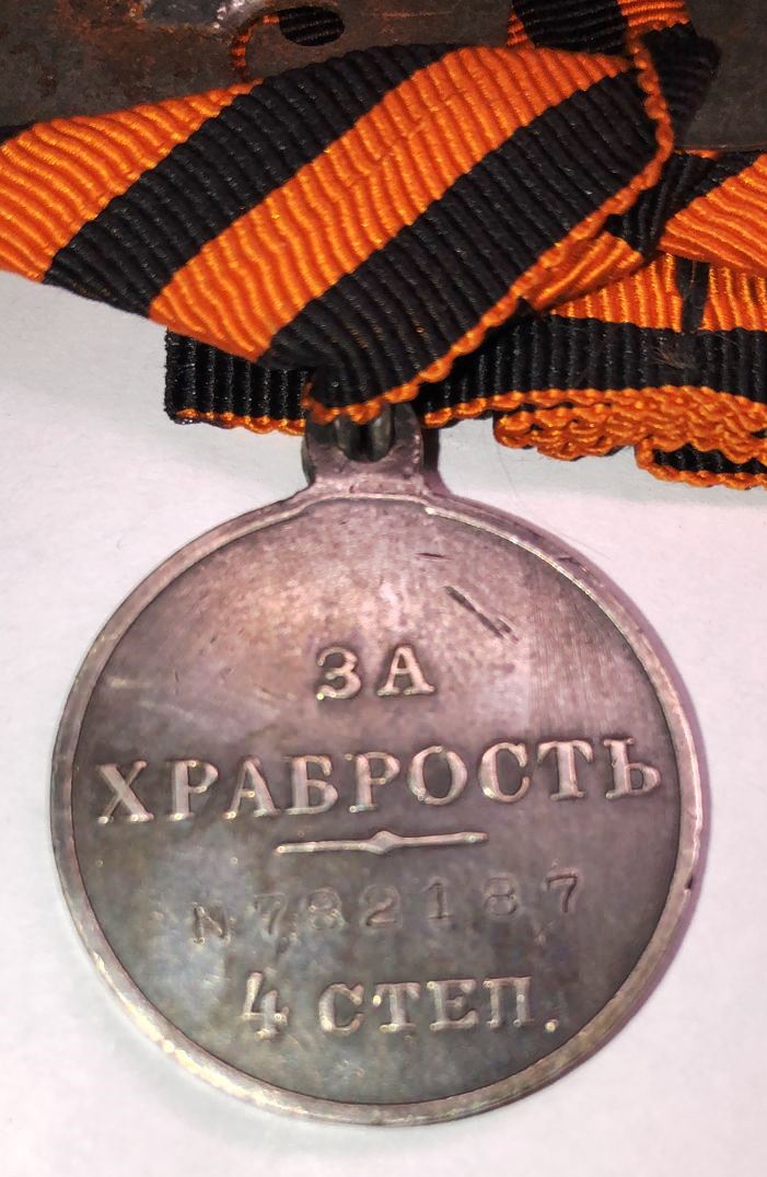 5 рота, рядовой. Награжден 25.01.1917 по Высочайшему повелению Его Императорским Высочеством Великим Князем Георгием Михайловичем за то,