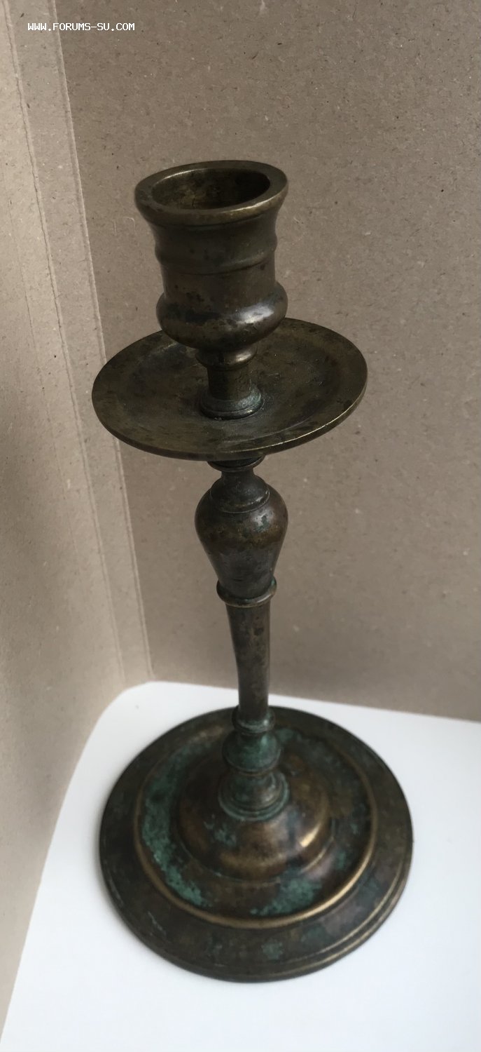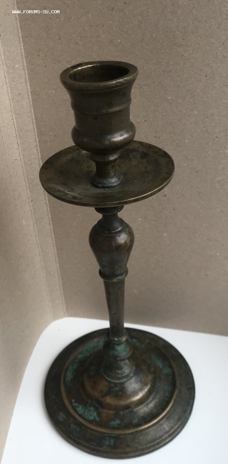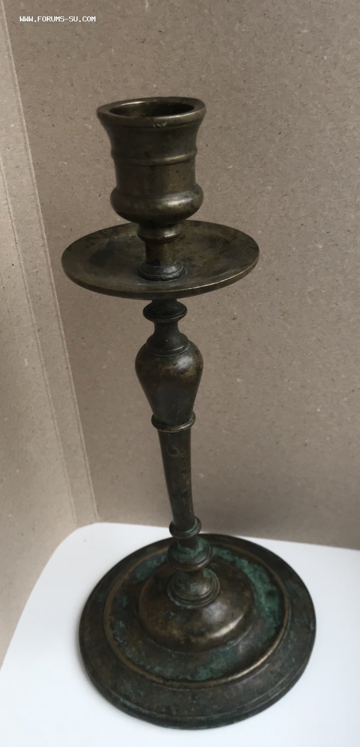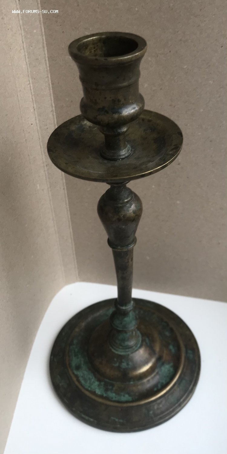 Большой дореволюционный бронзовый подсвечник. Высота 23 см, диаметр основания 11 см, под свечу диаметром 2,5 см.