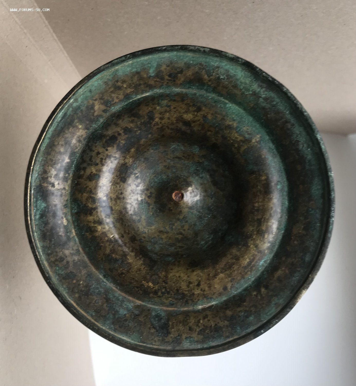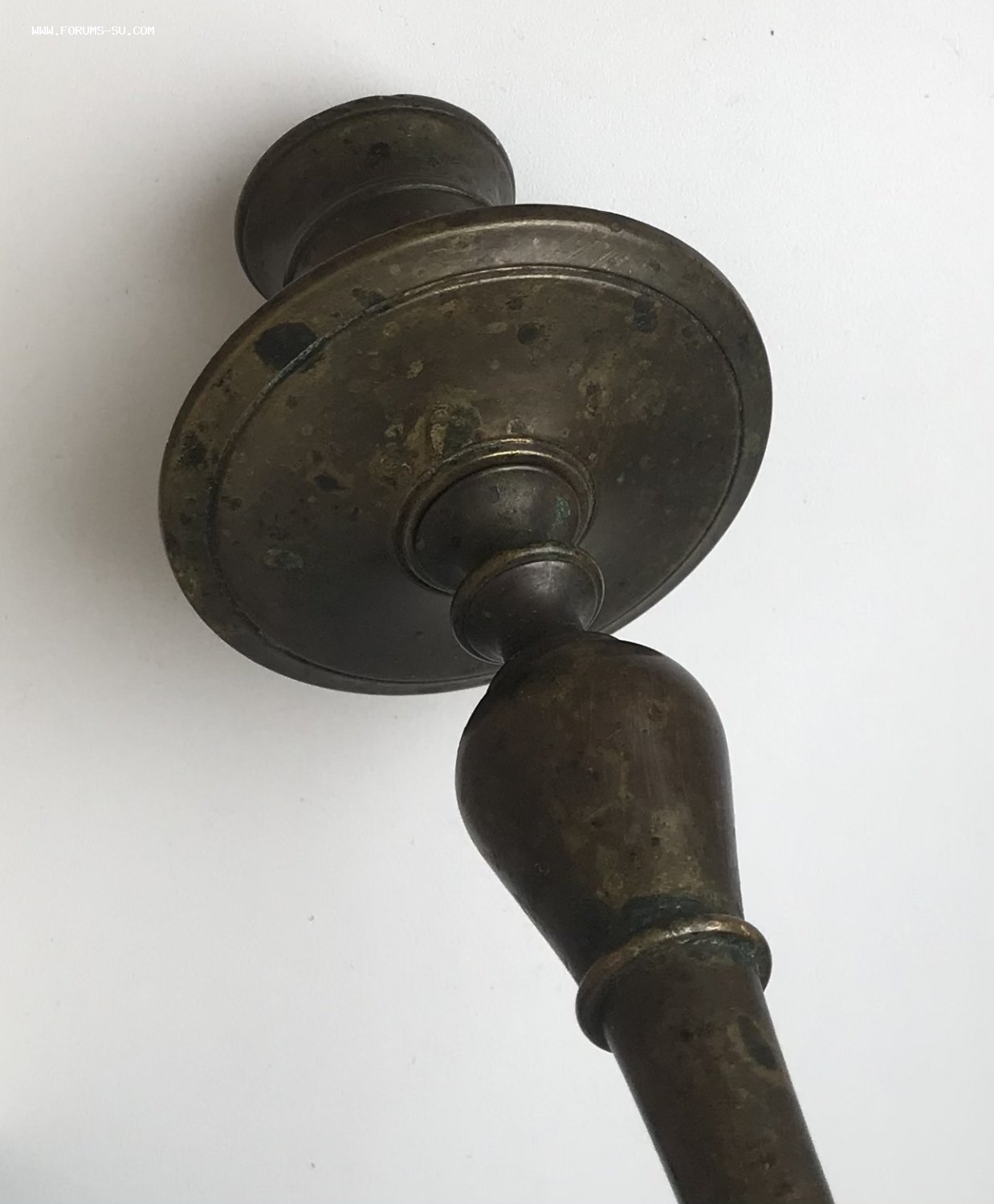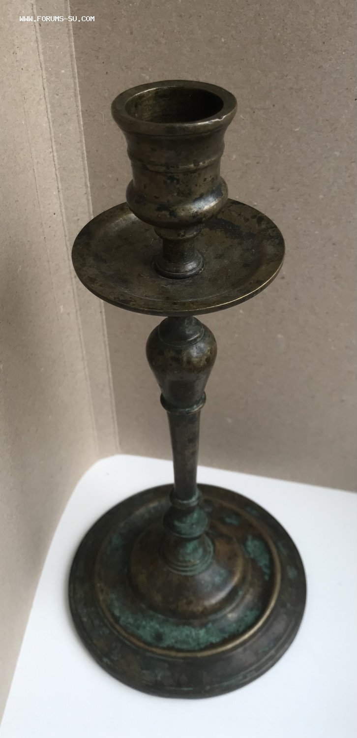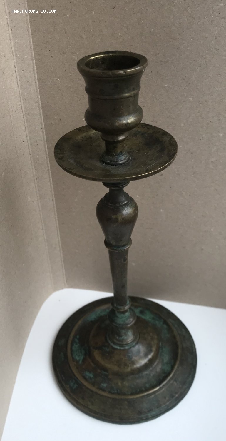 Большой дореволюционный бронзовый подсвечник. Высота 23 см, диаметр основания 11 см, под свечу диаметром 2,5 см.