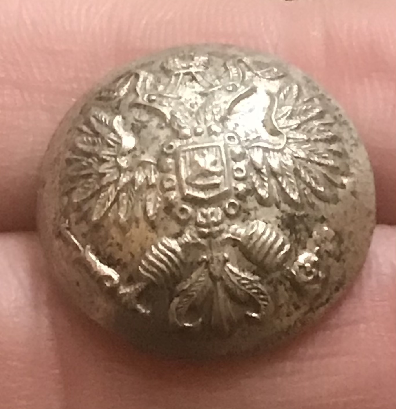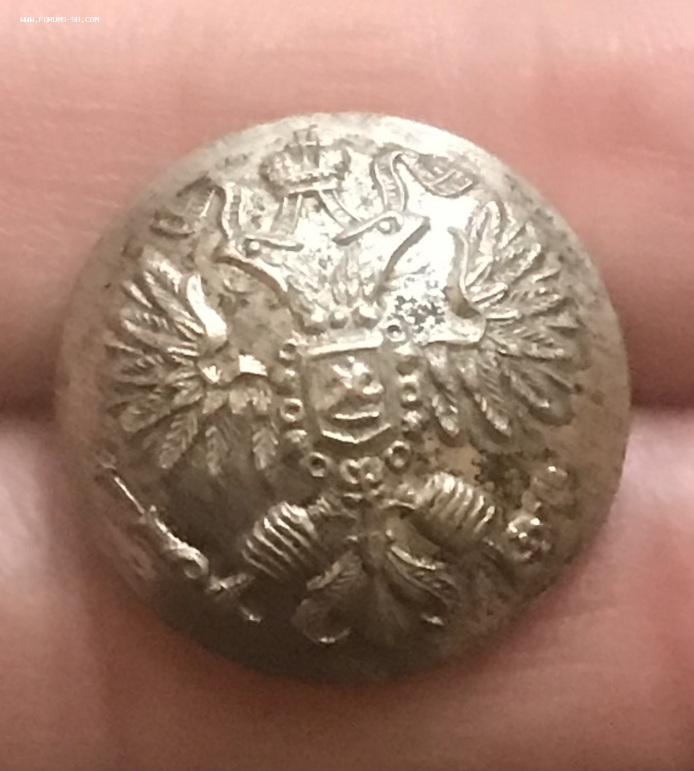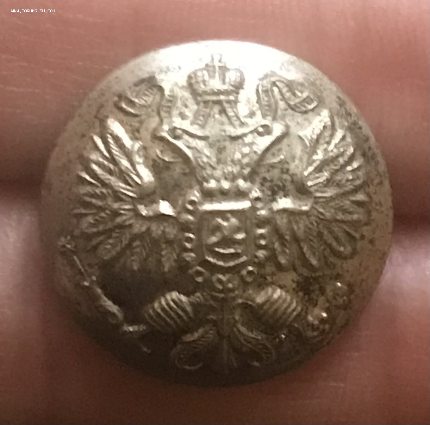 Посеребрённая дореволюционная пуговица коллежского секретаря по Корпусу Лесничих. В люксе. Диаметр 2,2 см. Москва, 1 сорт.