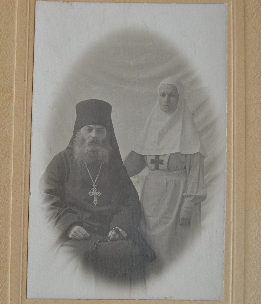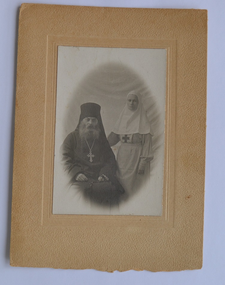 ФОТО АРХИМАНДРИТА СЕРГИЯ С СЕСТРОЙ МИЛОСЕРДИЯ 1927г. Размер фото с паспарту-22х16см, без-9х14см