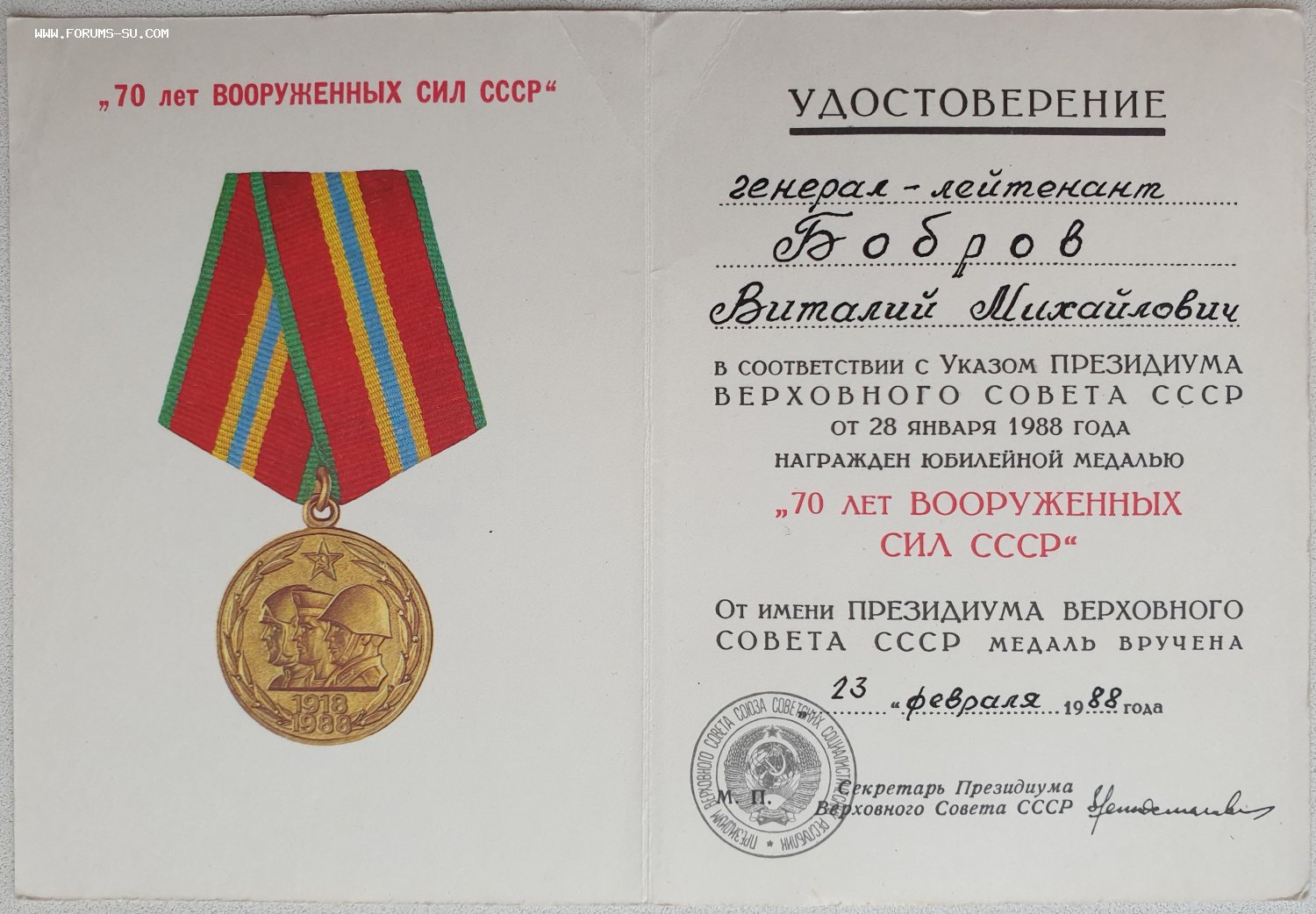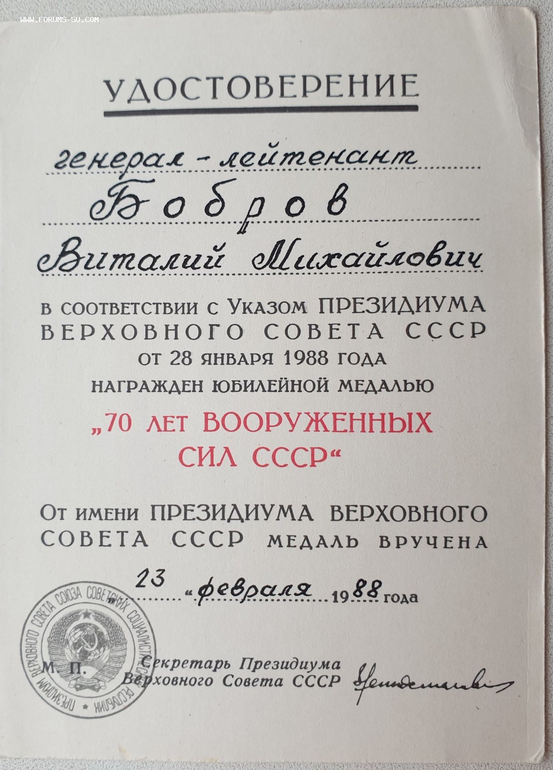 70 лет ВС СССР спецбланк от Ментешашвили = фикс 100 $ + почта