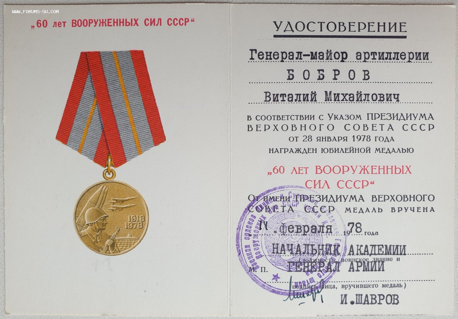 60 лет ВС СССР от генерала армии Шаврова Ивана Егоровича https://ru.wikipedia.org/wiki/%D0%A8%D0 ... 80%20(1977). = фикс 60 $ + почта