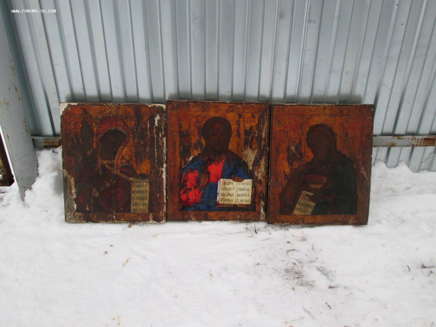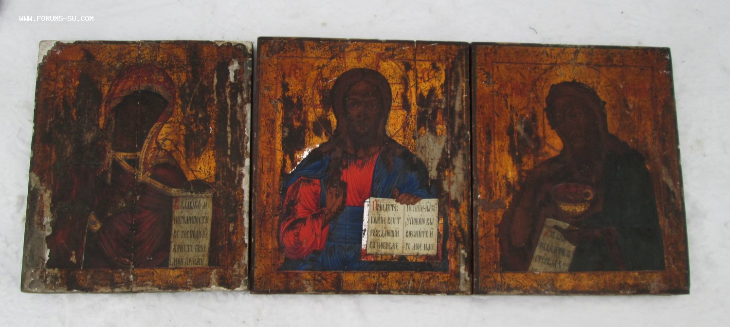 Иконы "Деисусный чин". Живопись на серебре, без реставрации. Вес трех Икон более 10 кг. Все Иконы родные, единый комплект.