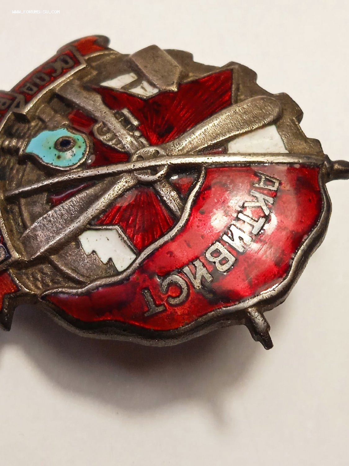 Возможно была реставрация по эмали на знамени.